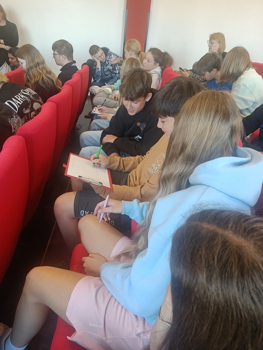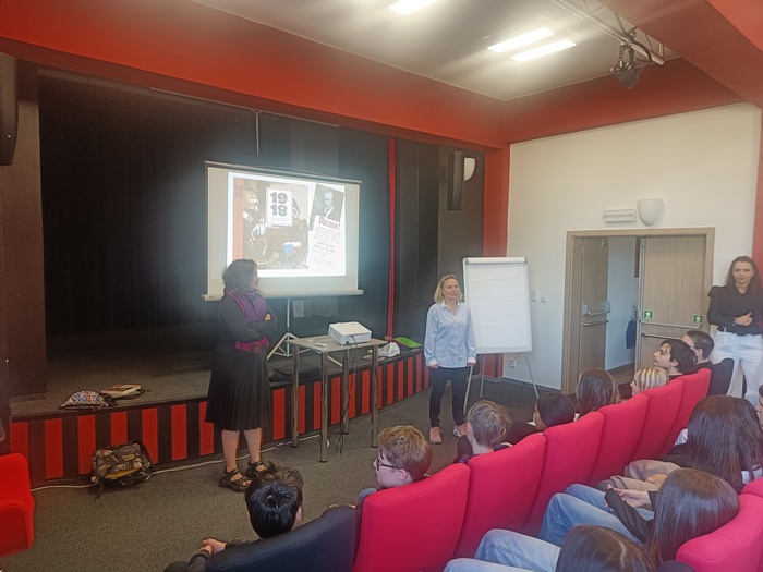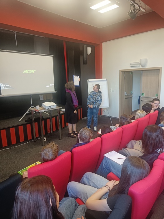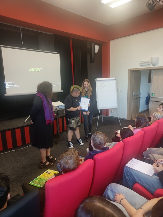 Ve středu 23. 4. absolvovali žáci 7. a 8. ročníků besedu se spisovatelkou, dramaturgyní a šéfredaktorkou časopisu 100+1 Vendulou Borůvkovou. Paní Borůvková je mj. autorkou knihy 1918 aneb Jak jsem dal gól přes celé Československo. A právě tato kniha, která zobrazuje na příběhu chlapce Jendy první okamžiky nového státu, se stala předmětem besedy. Žáci tak měli možnost skrze osudy chlapcovy rodiny nahlédnout pod pokličku zásadních událostí roku 1918 a následujících let. V rámci besedy si žáci vyzkoušeli navrhnout znak a měnu svého nového státu, což se stalo příjemným zpestřením spisovatelčina povídání.