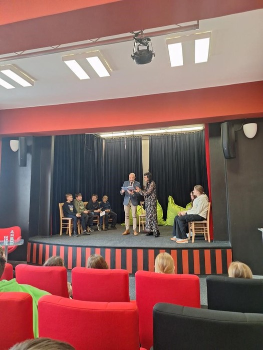 Naše škola v úterý 11. března hostila spisovatelku Lenku Rožnovskou, která dětem z 5. A a 5. B připravila zábavné čtení obohacené divadelními prvky. Děti se aktivně zapojily do příběhu, kdy je vedli nejen paní Rožnovská, ale i pan učitel Jaroslav Winter a paní asistentka Monika Součková. Kromě čtení si děti prohlédly knihy autorky a měly možnost se ptát na její tvorbu. Beseda byla plná zábavy, interakce a inspirace pro mladé čtenáře.