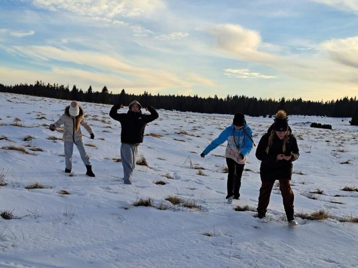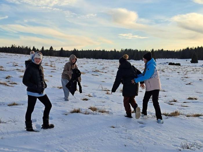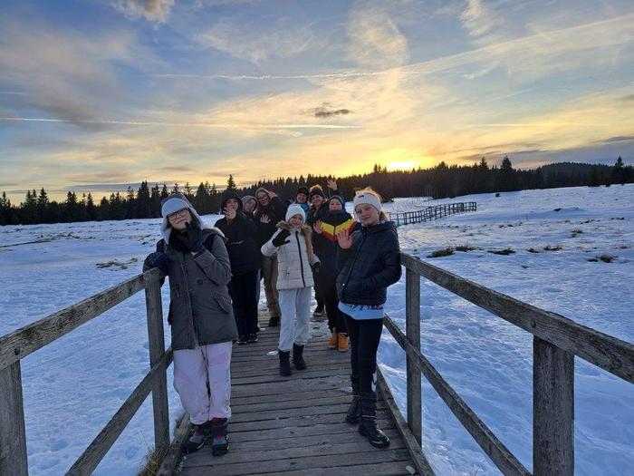 Třetí den na lyžích bývá kritický, a tak jsme po ranní lyžovačce změnili aktivitu, část se vydala na běžky a ostatní využili krásného slunného počasí a prošli Božídarské rašeliniště. Den byl opět jako malovaný. Večer proběhla přednáška na téma výstroj a výzbroj, nejvíce děti zaujala skialpová výbava paní učitelky Hylasové a věci, které mohou zachránit život během pádu laviny. Na závěr dne jsme měli herní večer, děti v týmech bojovaly v různých zábavných hrách a také se týmy posunuly ve hře Člověče, nezlob se na Božáku.