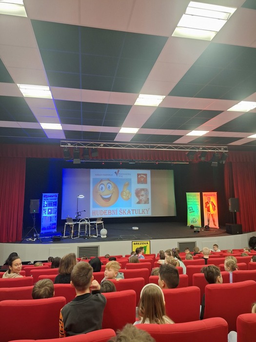 Nejprve se do březovského kina odebrali žáci 1. stupně na pořad s názvem Hudební škatulky, který žákům představil hudební žánry, konkrétně blues, reggae, pop a hip hop, prostřednictvím přirovnání ke čtyřem ročním obdobím. Každé období bylo reprezentováno největšími ikonami těchto stylů a doplněno hudebními ukázkami. Pořad byl interaktivní, zapojoval žáky a vytvářel příjemnou atmosféru pro všechny zúčastněné. Žáci si užili nejen zábavu, ale dozvěděli se rovněž nové poznatky o historii a významu těchto hudebních žánrů.