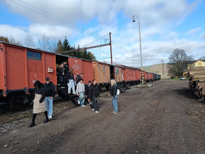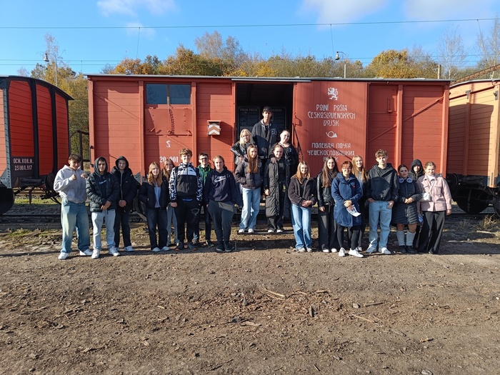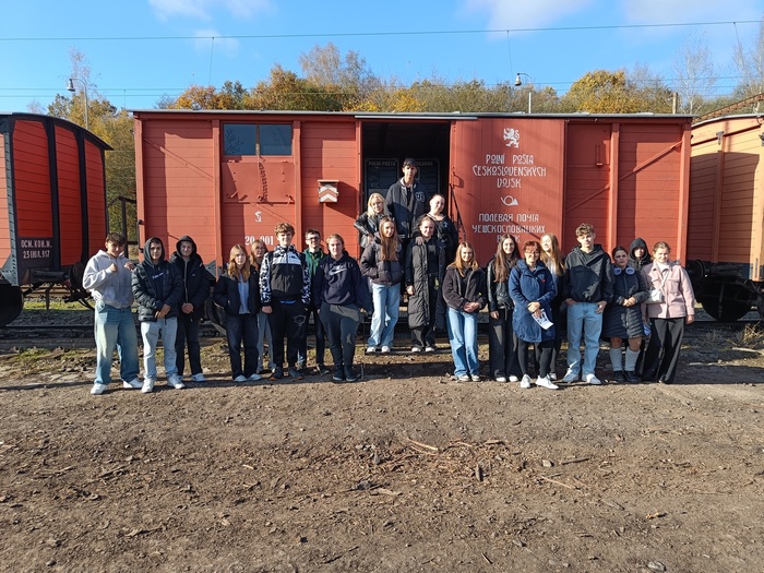 V pátek 1. listopadu jsme s deváťáky využili jedinečnou šanci se podívat na pohyblivé muzeum československých legií na kolejích. Do Kynšperka nad Ohří totiž přijel Legiovlak, projekt Československé obce legionářské, který představuje věrnou repliku legionářského vlaku z období let 1918 - 1920, kdy na Transsibiřské magistrále v Rusku probíhaly boje československých legionářů. Vlak projíždí územím České republiky od roku 2015, ale ne každý rok zavítá do Karlovarského kraje v (pro nás) dostupné vzdálenosti.
