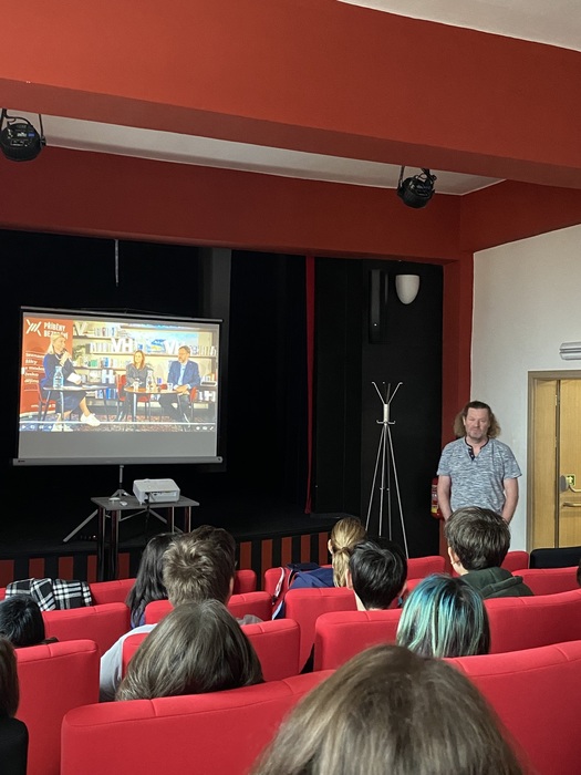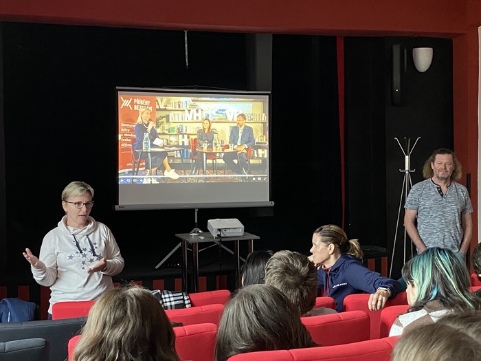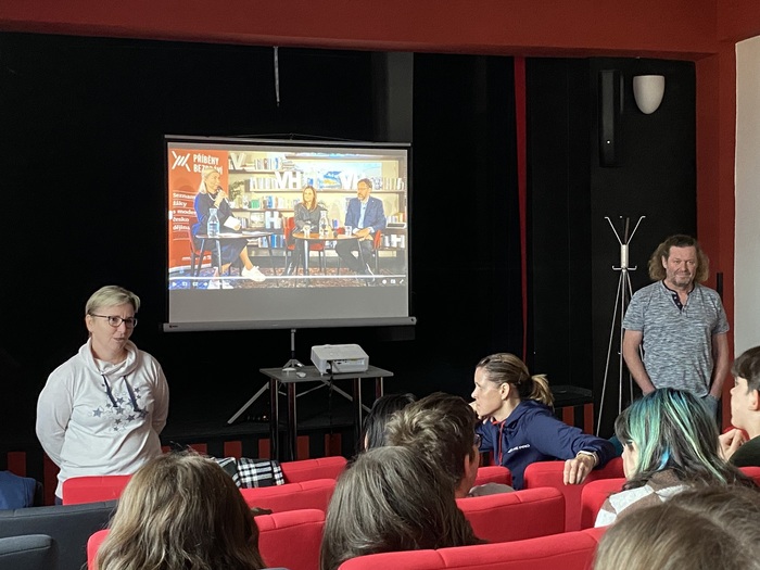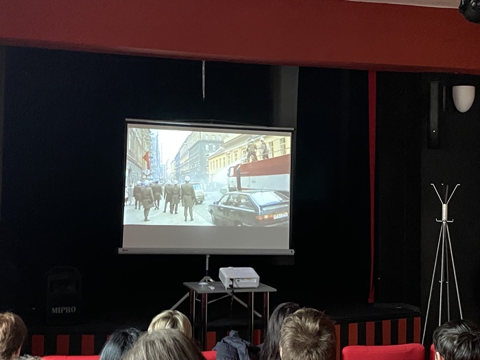 Po promítnutí filmu následovala online beseda s účastníky listopadových demonstrací roku 1989. Žáci tak mohli slyšet příběh Kláry Jirovcové Pospíšilové, dříve studentky žurnalistiky, která se svou kamarádkou navštívila den po zásahu policie proti studentům na Národní třídě byt tehdejšího československého předsedy vlády L. Adamce, aby ho zpravila, byť zraněná, o těchto událostech. Dalším hostem online debaty byl Martin Klíma, spoluzakladatel hnutí Stuha a spolupořadatel demonstrace na Albertově v roce 1989. Příběhy těchto pamětníků doplnili i naši pedagogičtí zaměstnanci, kterým patří mé velké poděkování za sdílení vlastních zážitků a postřehů.