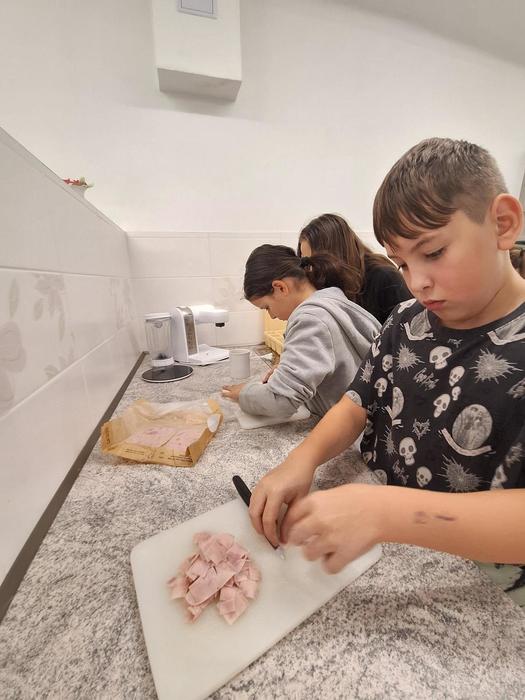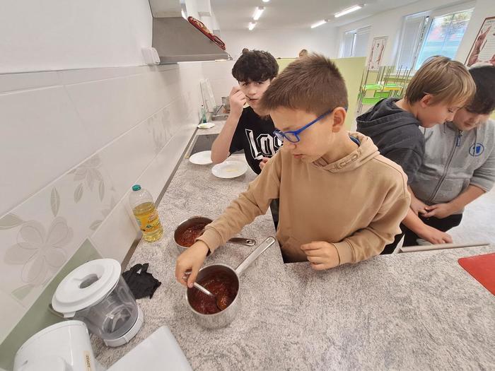 V 5. B proběhla ve středu 23. 10. 2024 zajímavá akce v rámci pracovní výchovy, která spojila žáky s budoucím kuchařem Honzou. Tato spolupráce vedla k vytvoření skvělých mini pizz, které si žáci nejen vyzkoušeli připravit, ale také je s radostí snědli.