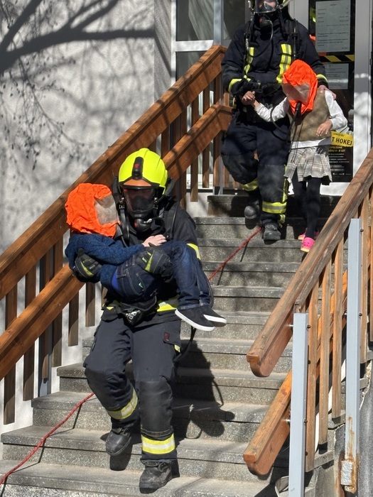Děti i s dospělými evakuaci zvládly na jedničku a i hasiči prošli "prověrkou", když hledali ukryté děti.