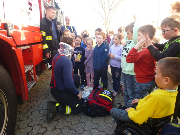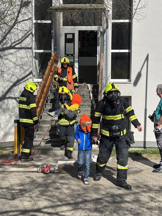 Ve středu 16.4.2025 jsme společně s naší březovskou jednotkou dobrovolných hasičů vyzkoušeli evakuaci žáků 1. tříd, které se nacházejí v budově školní družiny. Tyto třídy se neúčastnily podzimní evakuace, počkali jsme, až nám trošičku "dorostou" a budou se v budově zkušeněji pohybovat. Hasiči zvolili velmi citlivý přístup a den před,v úterý, se přišli představit ve své výzbroji, popovídat si s dětmi.