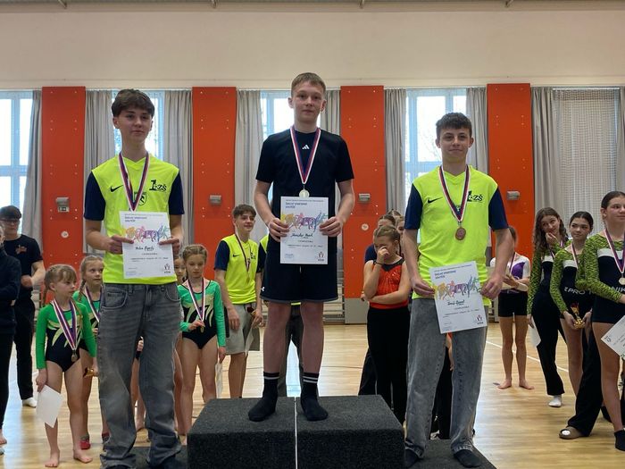 Naše družstvo mladších gymnastek ve složení Weissová A., Machálková N., Machálková S. a Linhová J. si svými výkony zajistilo zlatou medaili. Starší děvčata ve složení Zensová A., Pfeifferová S. a Černáčová L. skončila na 4. místě a stříbrnou medaili si odneslo družstvo starších kluků (Szalay M., Kůta R., Zahorulko K. a Macháček P.) V soutěži jednotlivkyň se na stupně vítězů postavila ještě mladší děvčata – 2. Weissová A., 3. Machálková N. Gratulujeme vítězům a děkujeme závodníkům za reprezentaci naší školy.
