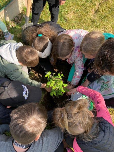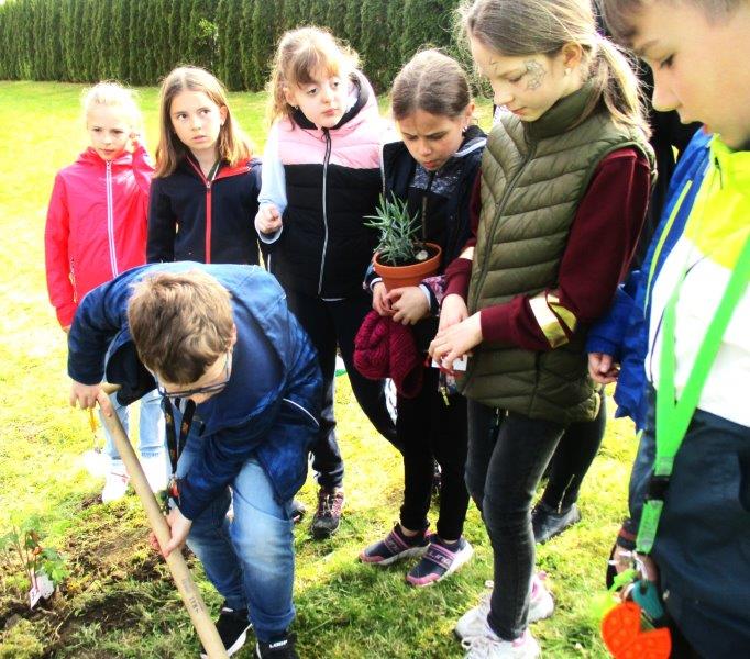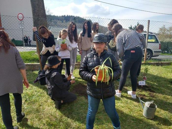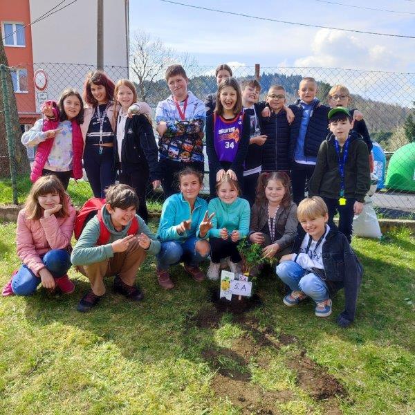 V závěru dne si každá třída zasázela na školní zahradě svůj keř drobného ovoce (maliny, borůvky nebo rybíz). Rádi bychom tímto prvním krokem začali postupnou proměnu školní zahrady v místo vhodné pro praktickou a badatelskou výuku venku, což by žáci velmi ocenili.