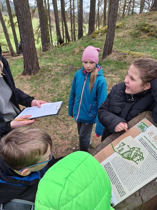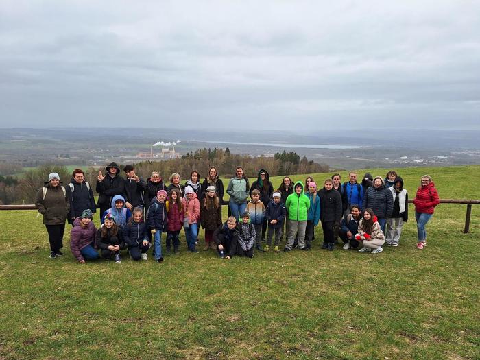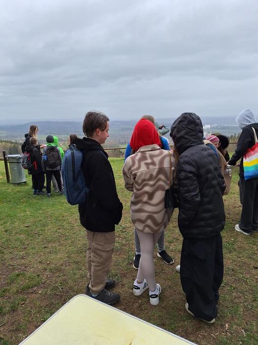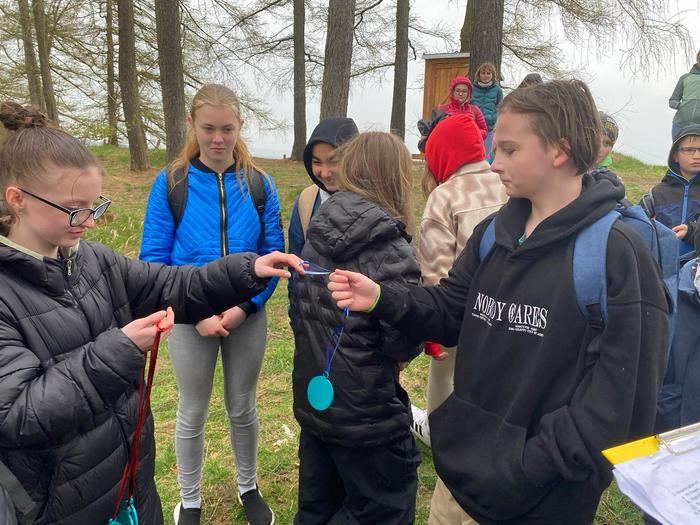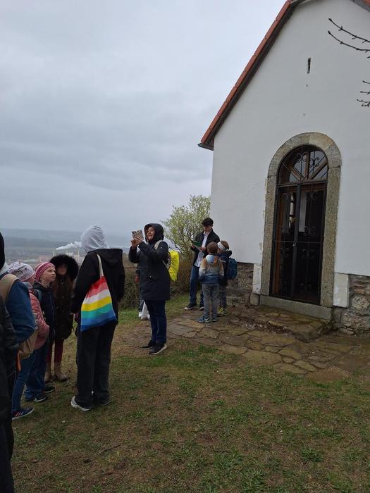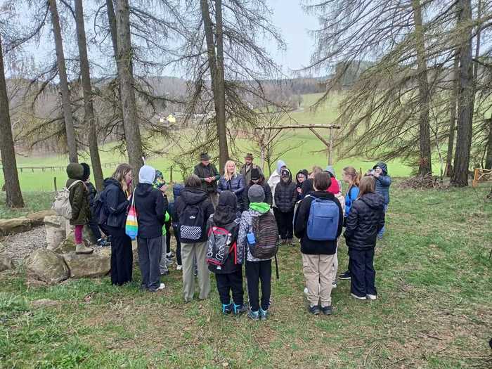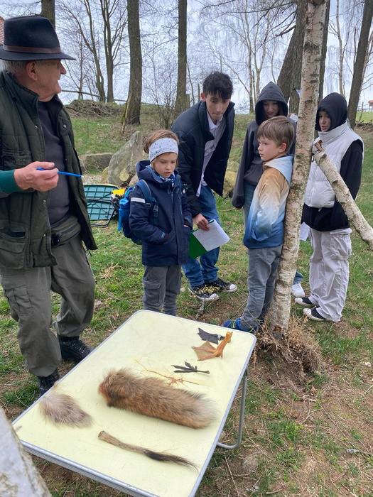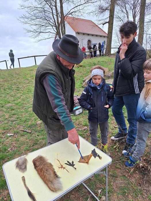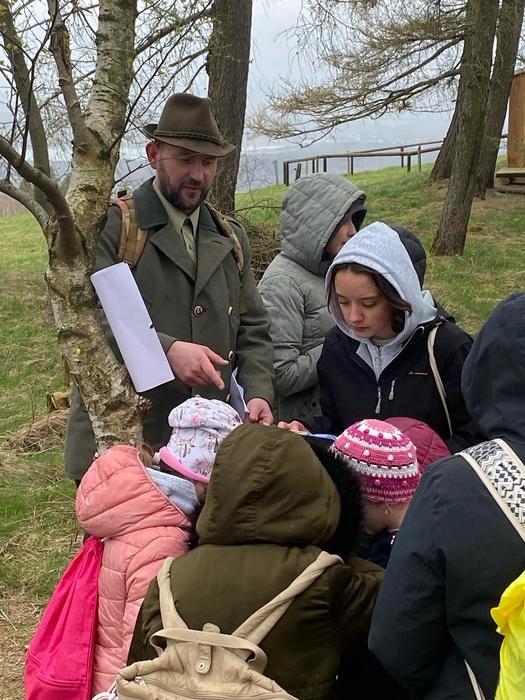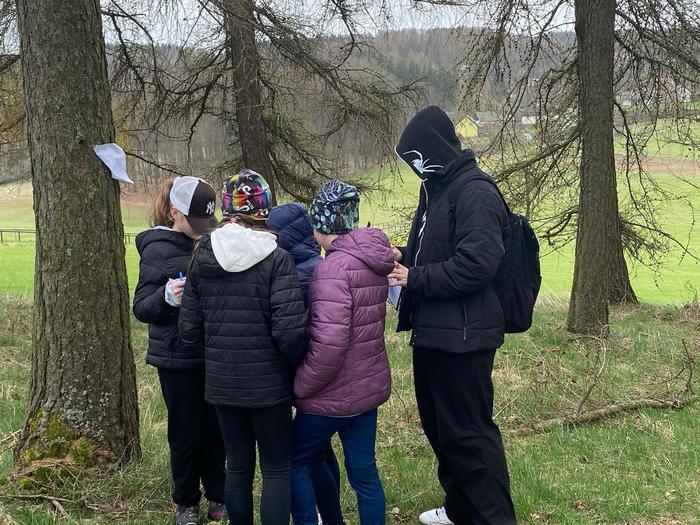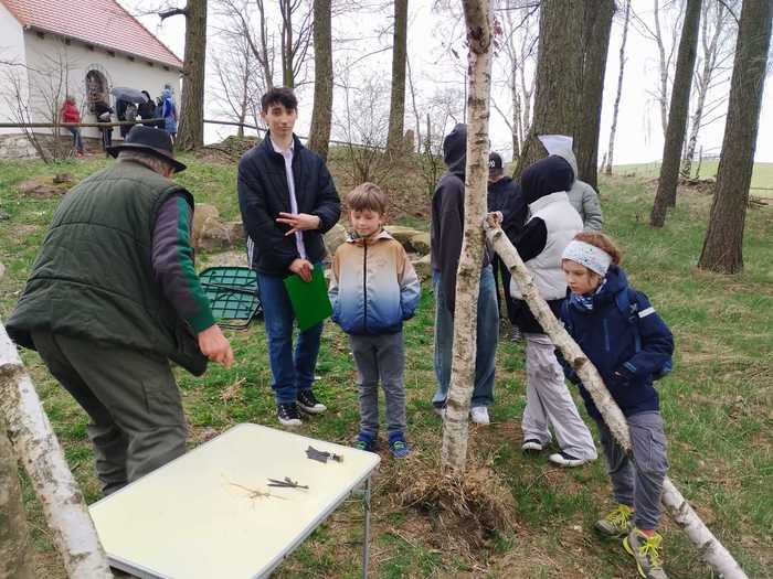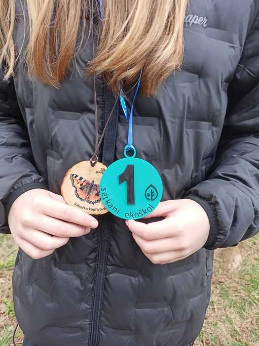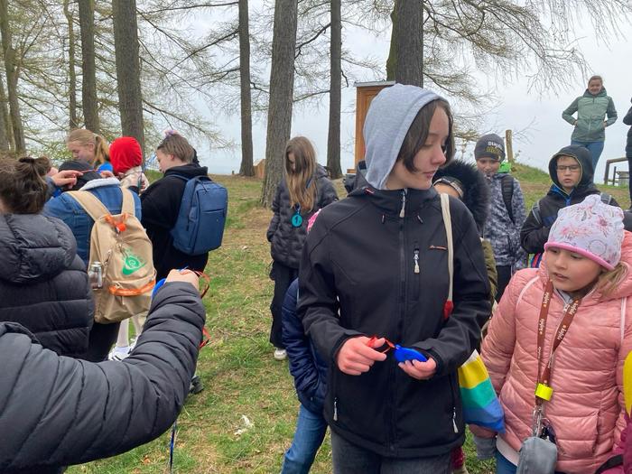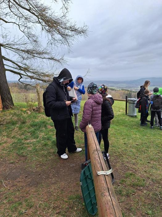 Jakmile byli všichni dostatečně nasyceni a napojeni, vedla další jejich cesta na kapličku sv. Máří Magdalény na vyhlídce na Knocku. Zde čekaly na žáky nejen výhledy, ale i lesní aktivity pod vedením p. K. Doubka. Ekotýmáci vytvořili různorodé týmy a hledali odpovědi na naučné stezce „Les poznání na Knocku“ a připravené měli i poznávačky o lesní zvěři. Nejúspěšnější týmy obdržely medaile, které pro tuto akci připravil na 3D tiskárně p. uč. A. Očkay.