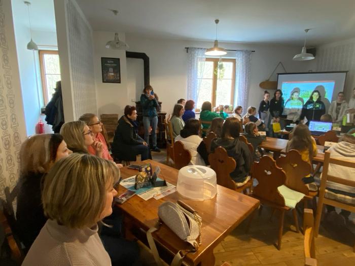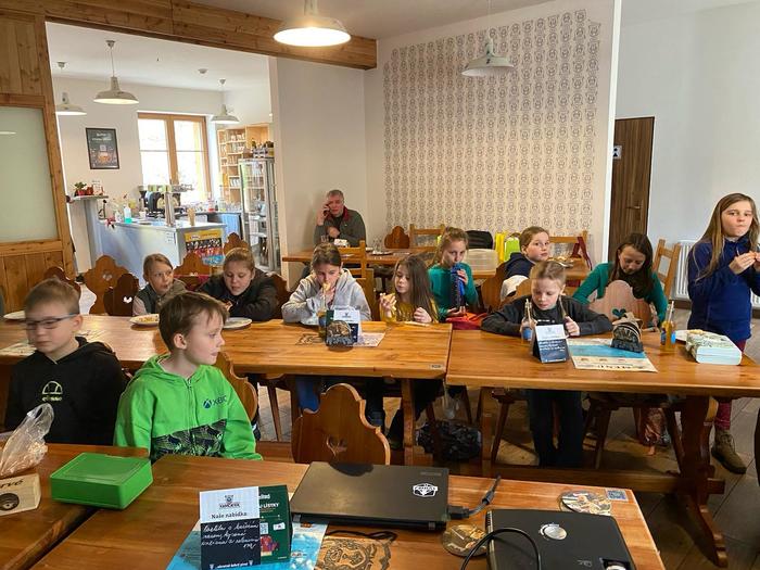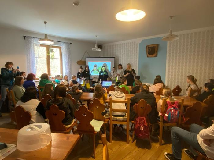 Zahájili jsme příjemné středeční dopoledne 3. dubna na Kamenici v hospůdce na Kamčatce, která se u této příležitosti přeměnila v konferenční sál. Pan místostarosta M. Bouda a koordinátorka ekoškoly Š. Krausová přivítali účastníky škol z celého kraje, učitele i ekotýmáky z řad žáků. Náš Ekotým si připravil pro všechny výborný slano-sladký raut (za zdravé pomazánky děkujeme kuchařskému teamu školy) a malou prezentaci své činnosti. Jednotlivé školy se také představily a udělaly krátký vhled do svých aktivit. Ředitel sokolovského muzea p. M. Rund pak zaujal všechny přednáškou: „Za poklady Slavkovského lesa“. Poté následovalo občerstvení a diskuse účastníků s předáváním svých zkušeností.