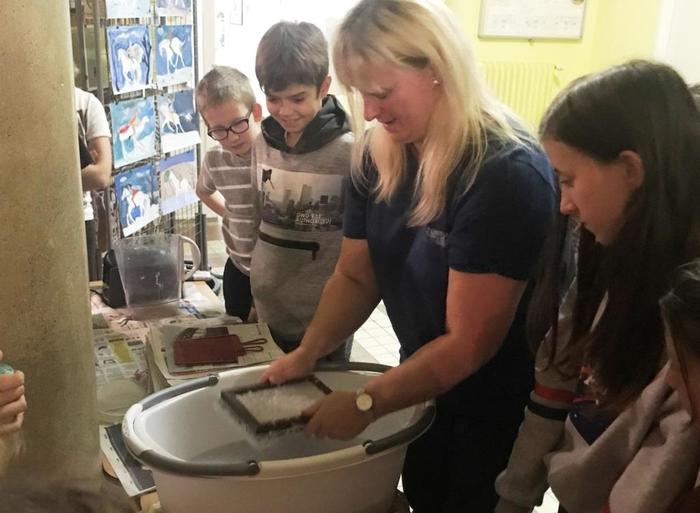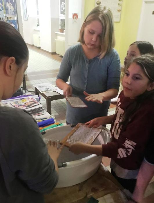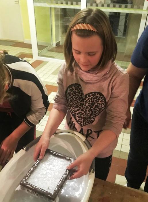 Koncem listopadu z pátka na sobotu se pro ekotýmáky otevřela škola, kde na ně čekalo mnoho zajímavých aktivit. Nejdříve to byly seznamovací hry, pak následovalo zkoumání historie výroby papíru a jeho recyklace a výroba vlastního ručního papíru. Po večeři, kterou si žáci sami předpřipravili – palačinky, zhlédli videa o práci jiných ekoškol. Před spaním ještě proběhla noční hra za pokladem s různými úkoly. Než byl poklad snězen (čokoládové bonbóny), ještě byl podroben zkoumání ohledně množství obalů, ve kterých je zabalen na úkor hmotnosti čokolády. Ráno po snídani, úklidu nádobí a spacáků ještě došlo na diskusi o práci ekotýmu a tématech ekoškoly. Doufáme, že prvotní nadšení všem zůstane a stanou se platnými a aktivními členy naší ekoškoly.