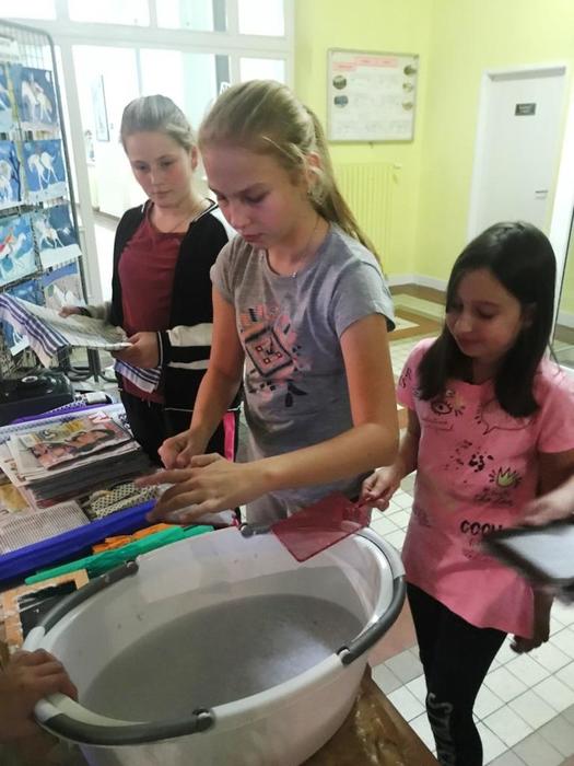 Během listopadu jsme zadali drobný úkol žákům, kteří se o členství přihlásili (napříč ročníky), aby nakreslili obrázek či sepsali pár vět o tom, jak oni sami přispívají k ochraně životního prostředí. Z tohoto drobného zadání se nám vykrystalizovala více jak dvacetičlenná skupinka a pro tu jsme zorganizovali tzv. PŘESPÁVAČKU EKOTÝMU ve škole.
