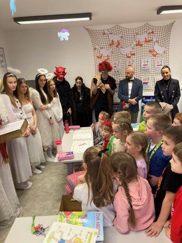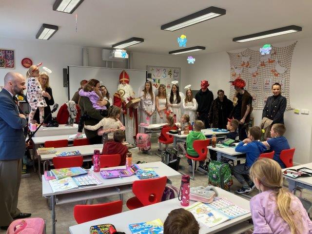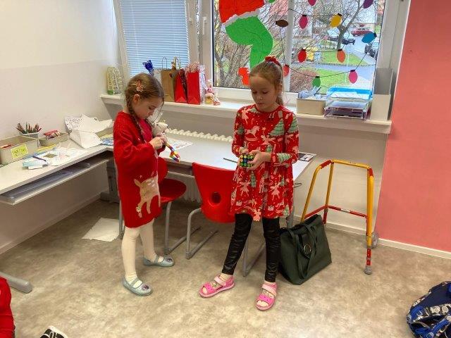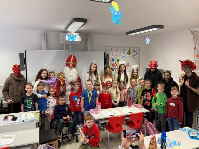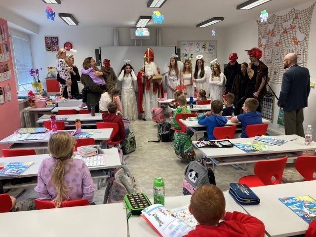 A nemůžeme zapomenout ani na návštěvu Mikuláše, čerta a anděla. Asi týden před jejich slibovanou návštěvou nám ze skříně zmizely Slabikáře. Nemohli jsme je vůbec najít. Když ale přišel Mikuláš a jeho pomocníci, nesli s sebou velkou krabici. Představte si, že Slabikáře schoval vánoční skřítek! Ještě, že ho Mikuláš s čertem a andělem potkali a všechno napravili.