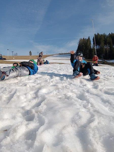 Ještě před večeří jsme si naposledy zadováděli na sněhu a pak už na nás v restauraci čekala odměna v podobě párku v rohlíku a potom i kopeček vanilkové zmrzliny. To ale zdaleka nebylo všechno. Po koupání jsme si totiž na chodbě mezi pokoji udělali pyžamovou párty! Tancovali jsme, smáli jsme se a byla velká legrace!