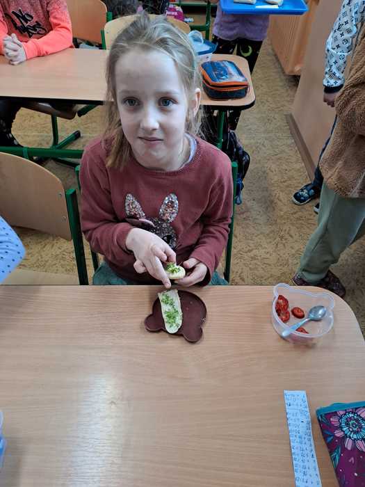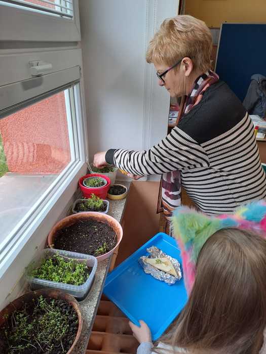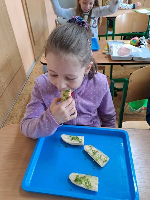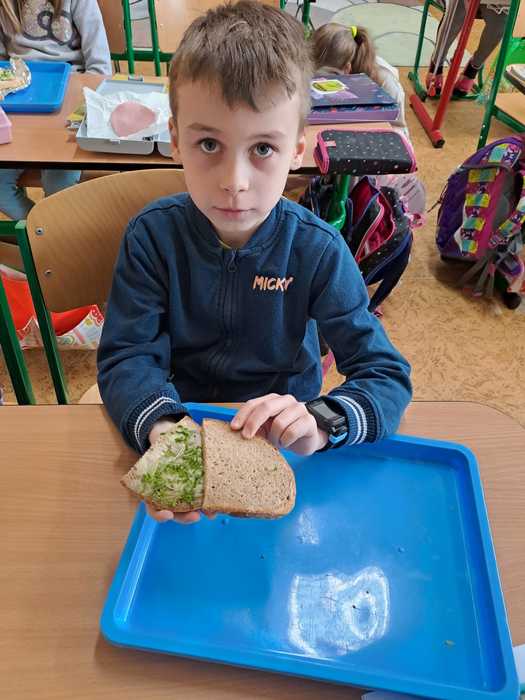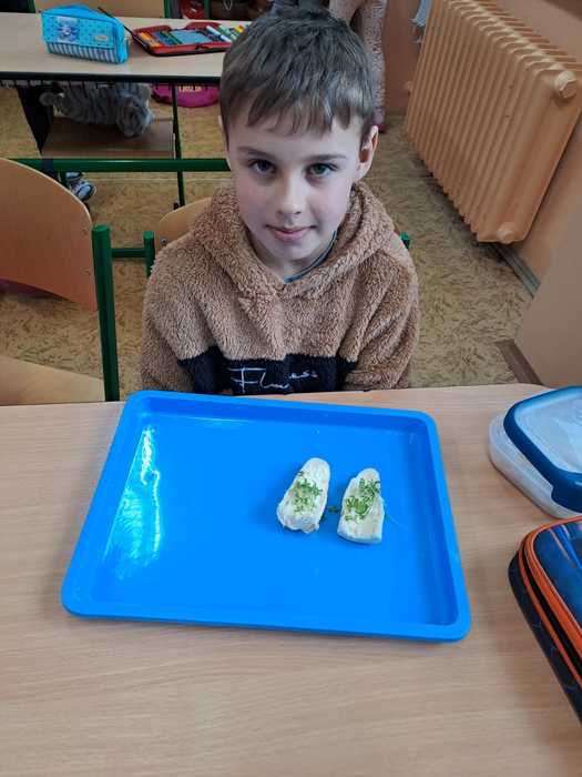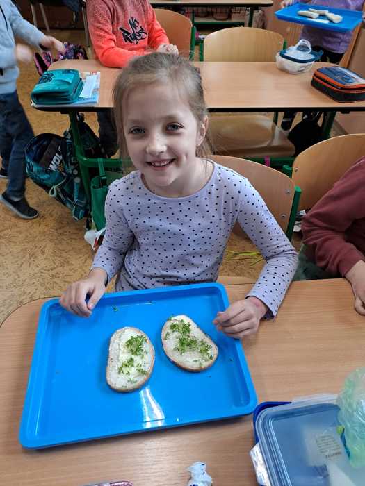 Tradičně v březnu sejeme řeřichu a poté si připravujeme zdravou svačinku. Poslední březnový týden, týden před Velikonocemi, jsme svačili zdravě. Naše vypěstovaná řeřicha a chléb nebo rohlík s máslem nám velmi chutná. Zase jsme udělali něco správného pro naše zdraví.