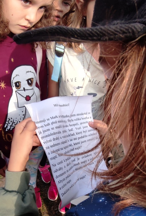 Úvod > Stránky tříd 25/26 > Archiv třídy > Rok 2022/2023 > 3.A > Fotogalerie 3. A > ŠP - Rozhledna Klobouk, nalezení tajemné zprávy