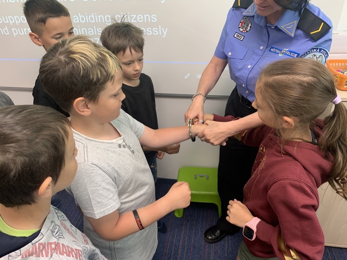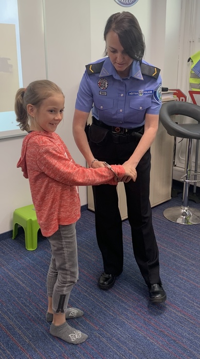 Dne 19. 5. navštívila 2.A Centrum prevence Sokolov. Strážnice městské policie si vyzkoušela žáky ze znalosti osobní adresy, popisu osoby. Povídali si o činnosti městské policie, tísňových číslech záchranného sboru, o vybavení městského strážníka. Vyzkoušeli si uniformy, pouta, seznámili se s čipovačkou na psy. Dopoledne bylo velmi příjemné. Moc děkujeme Renatě Černé, velmi se nám v Centru prevence Sokolov líbilo, program byl zajímavý a pestrý.