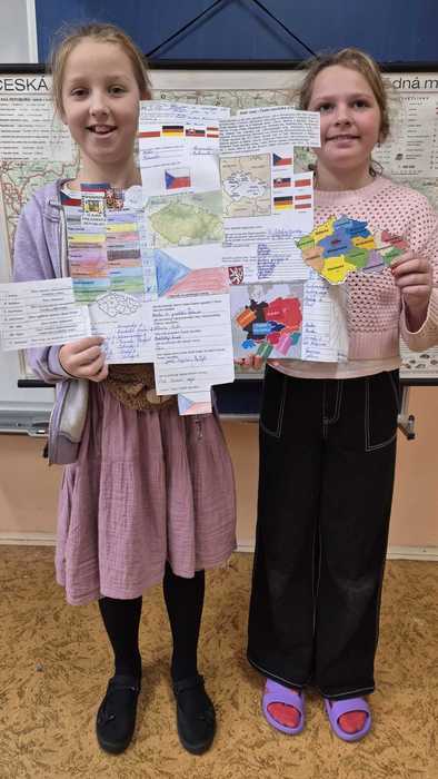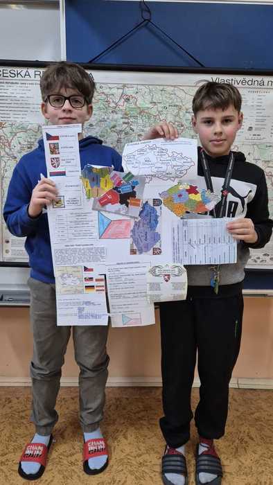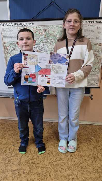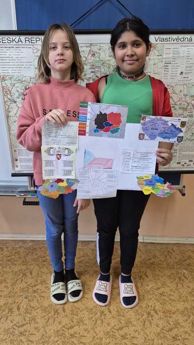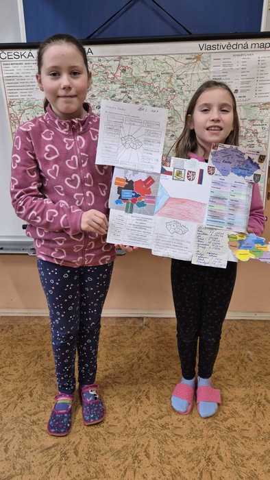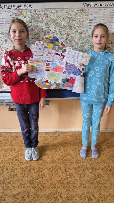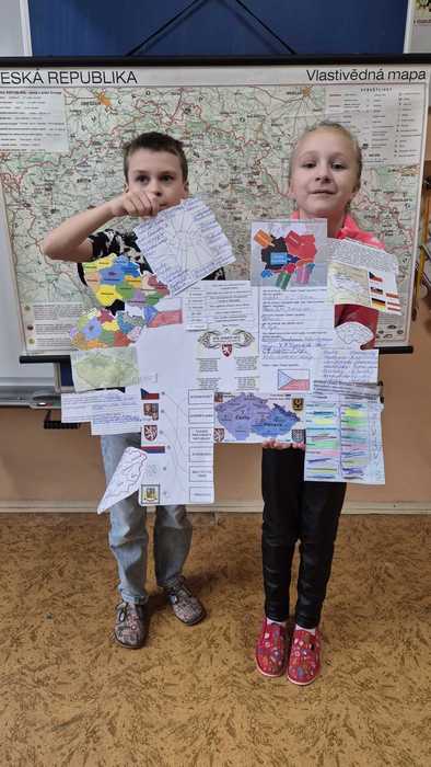 Učíme se o České republice a pracujeme s mapou. Víme, jaké jsou symboly ČR, kdo řídí náš stát i náš region. Na mapě najdeme hory, řeky i krajská města. To všechno jsme si zopakovali v rámci Projektu ČR. Také jsme pracovali s čísly, např. které město je na počet obyvatel největší nebo nejmenší, porovnali jsme výšku nejvyšších vrcholů hraničních hor a měřili jsme vzdálenosti měst podle měřítka mapy. Všichni jsme si připravili skvělé referáty o městech, které jsme navštívili nebo o práci hejtmana.
