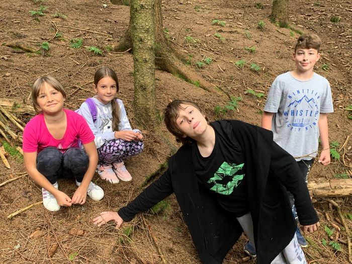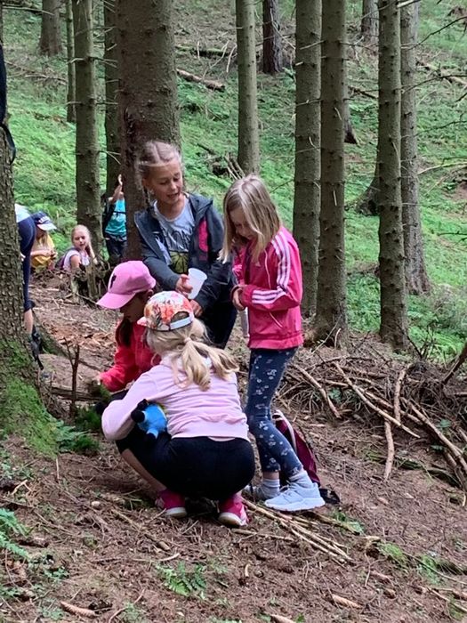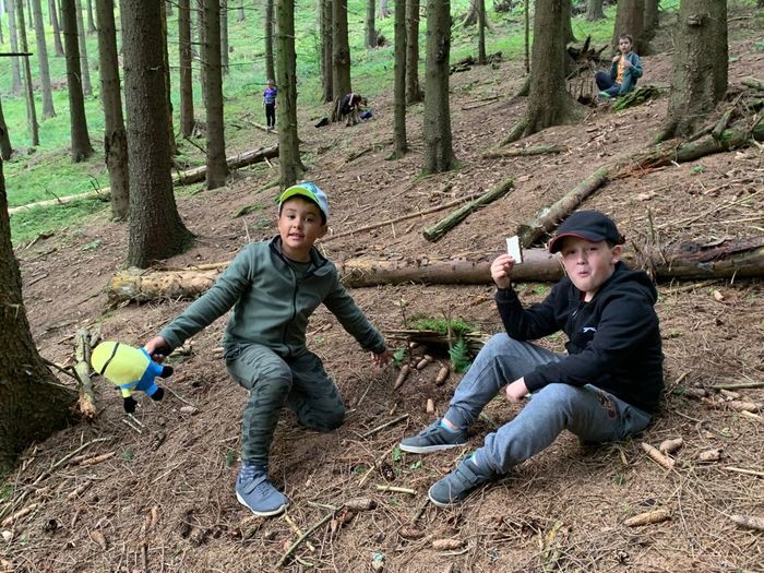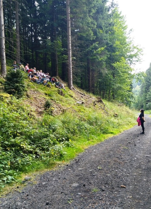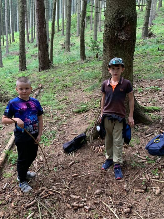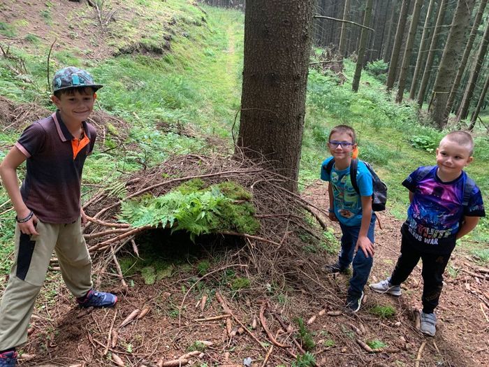 V sobotu, když jsme vybalili všechny věci a odpočinuli si po obědě, jsme museli prozkoumat okolí (je to tu samý kopec, samá hora), poslouchali jsme zvuky přírody a vyzkoušeli místní hřiště.