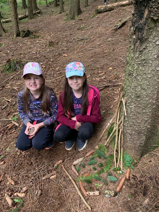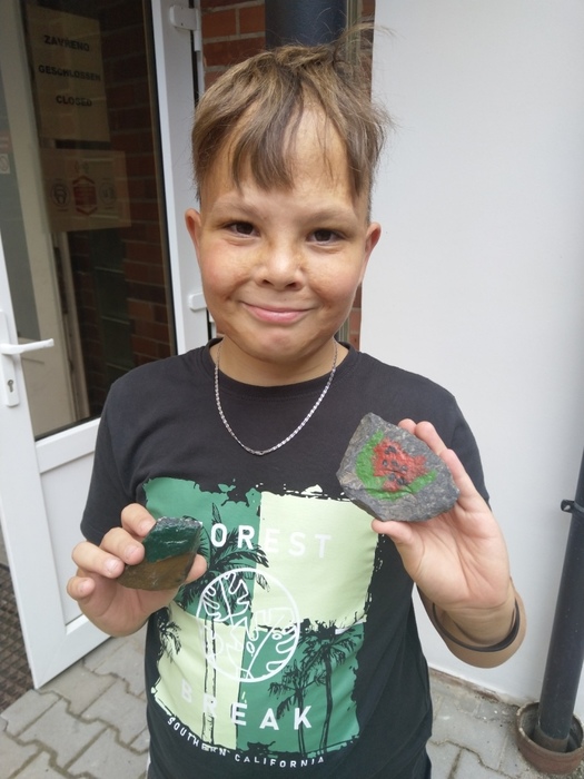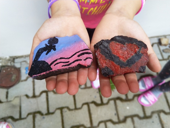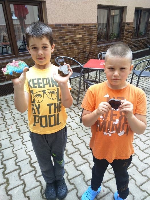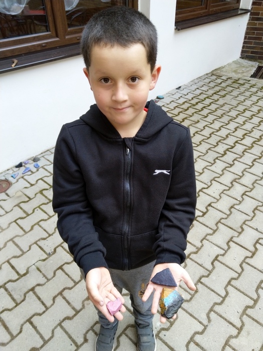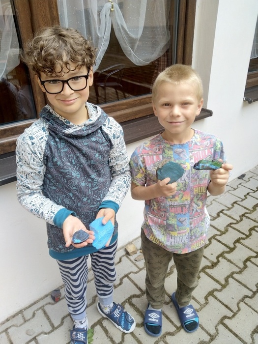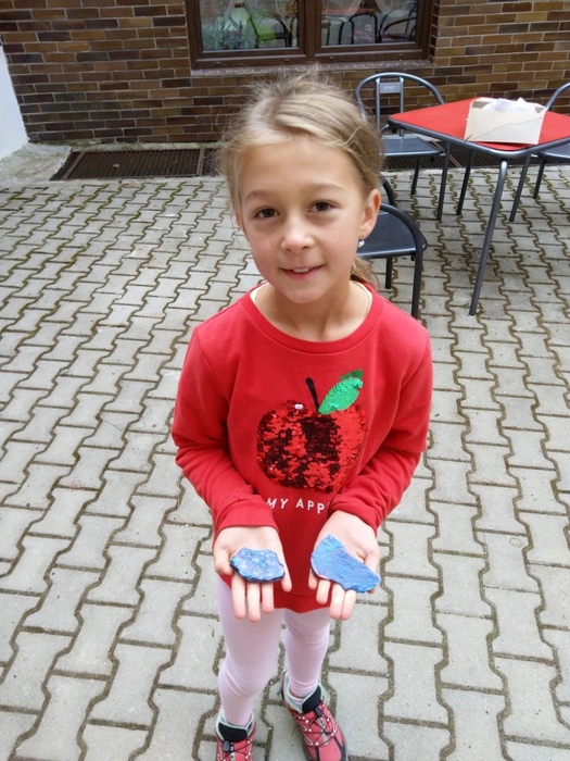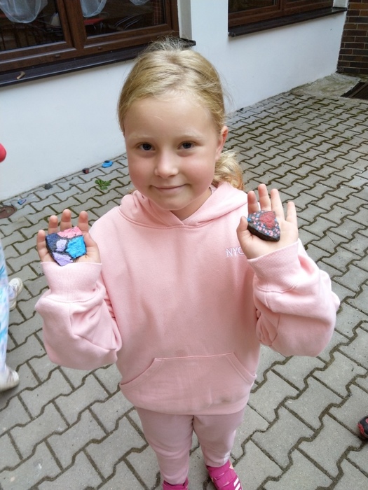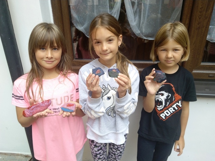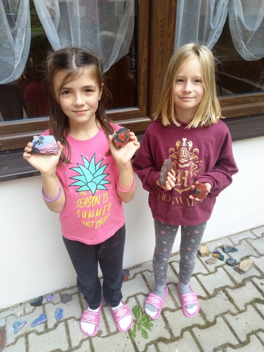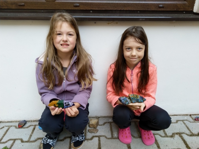 V neděli dopoledne jsme malovali nasbírané kamínky a odpoledne stavěli domečky pro lesní skřítky…