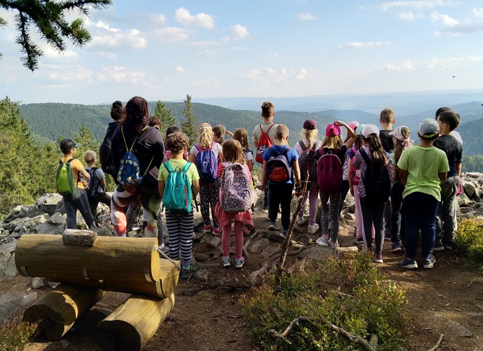 Po obědě nás paní učitelky chtěly asi pěkně unavit. Vytáhly nás totiž na proslulou místní Hadí horu. Hada jsme cestou sice nepotkali (to nám ani nevadilo), ale ten výhled stál opravdu za to…