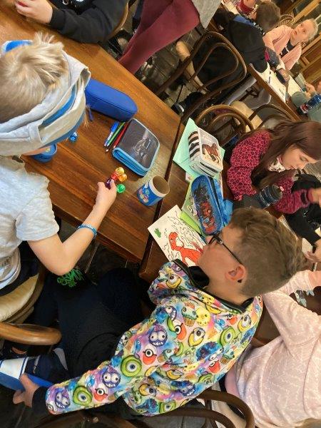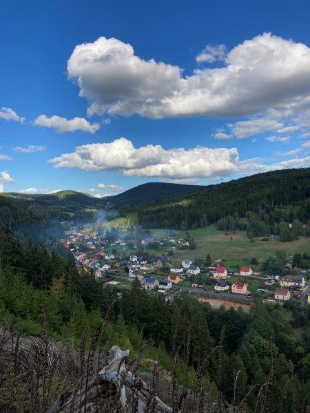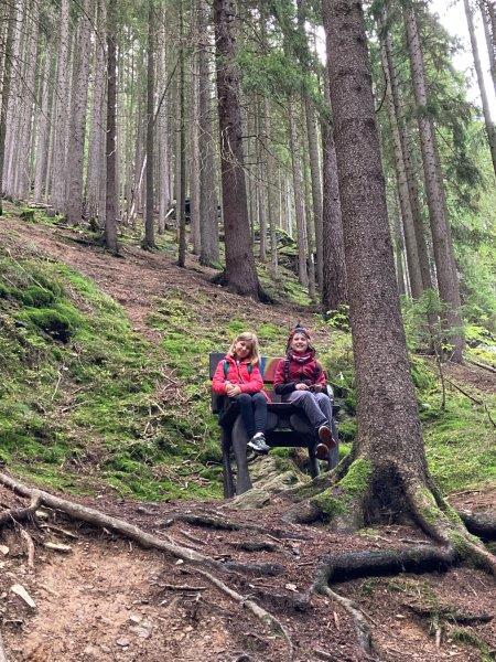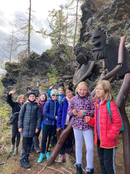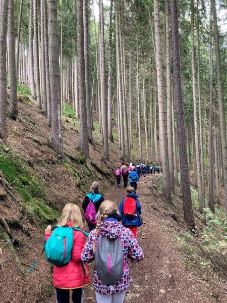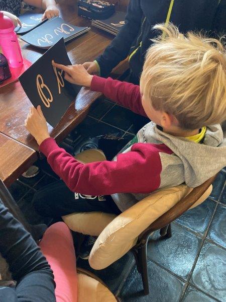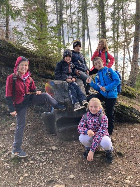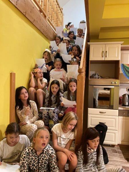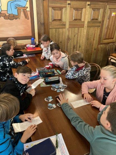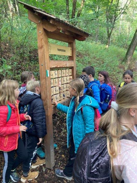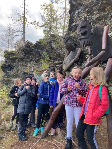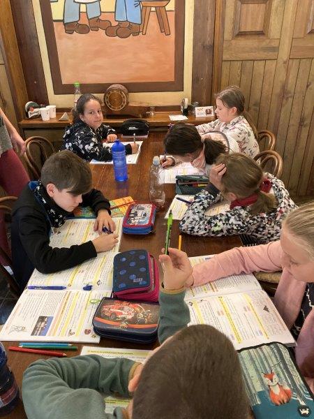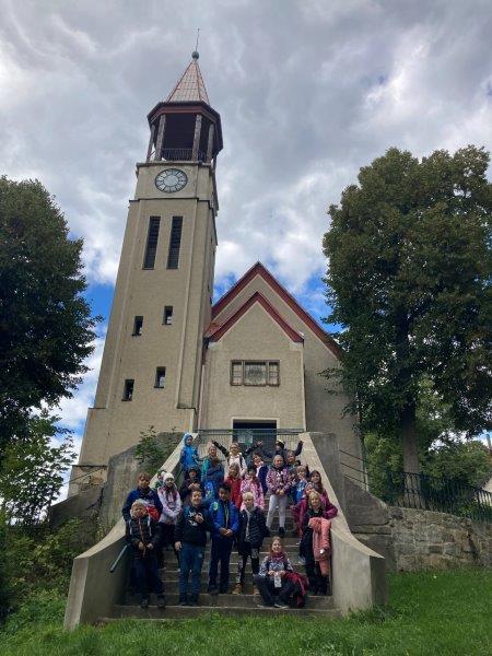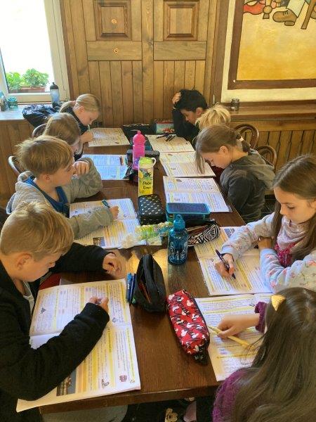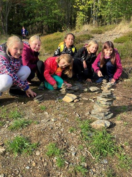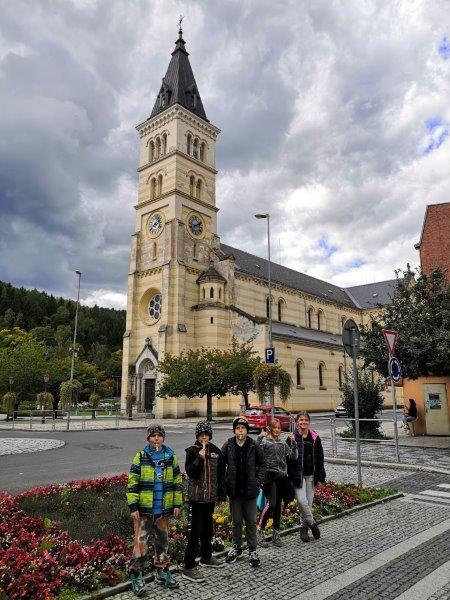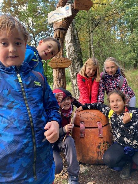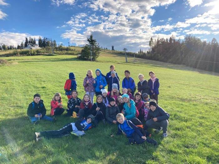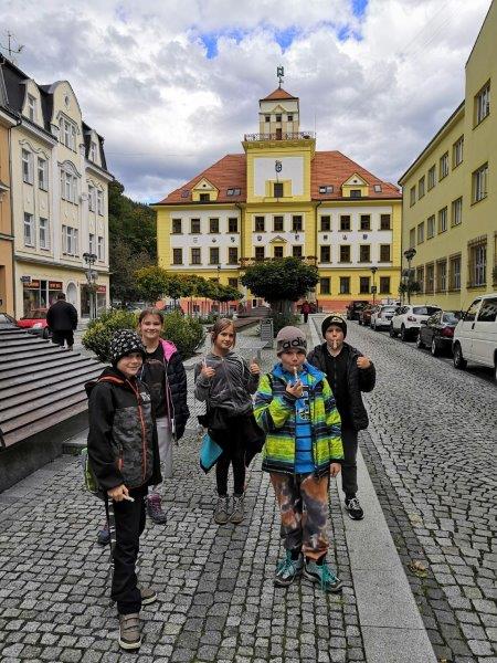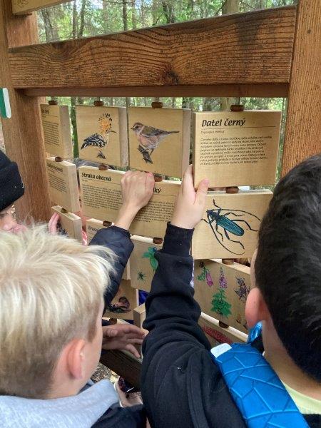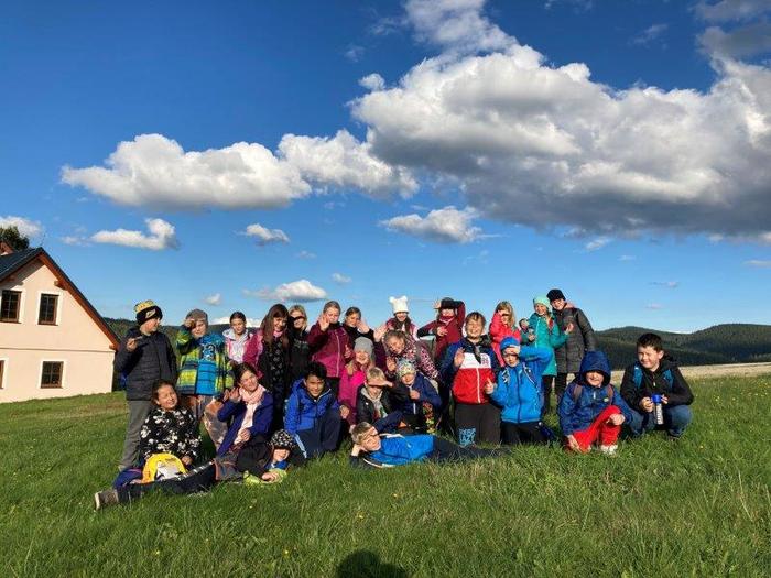 Předposlední den našeho indiánského dobrodružství začal trošku ospale, sluníčko se teprve klubalo skrz mraky a nám se z postelí moc nechtělo, ale nakonec nás vyhnala naše hladová bříška. U snídaně nás čekali párky, pečivo, zelenina a taky naše milované čokoládové kuličky s mlékem. Pak přišel čas na opakování z českého jazyka. Zvládli jsme vyplnit cvičení v pracovním sešitě, poznávat po hmatu písmenka, plácat mouchy s vyjmenovanými slovy a vymýšlet příběhy podle kostiček. Po svačině jsme si chvíli odpočinuli na pokojích, protože nás odpoledne čekal dlouhý výlet. V poledne jsme se posilnili zelňačkou a boloňskými špagetami a hned po O jsme se vydali na zastávku a nastoupili jsme do autobusu směr Kraslice. Moc jsme si přáli koupit si něco dobrého na zub, a tak jsme se zastavili cestou v místním obchodě a do poštovní schránky jsme vhodili poslední dopisy a pohledy. Vystoupali jsme schody na kopec ke kostelu, které se nám zdály nekonečné, a jako správní indiáni jsme se vydali na odvážnou cestu plnou nástrah a úkolů. Dozvěděli jsme se mnoho zajímavých informací o zvířatech a rostlinách, hledali jsme na stromech datla, straku nebo brouky, posadili jsme se na lesní trůn a naučili jsme se části těla prasete divokého v myslivecké hantýrce. Na samém konci stezky jsme narazili na loupežníky. A protože jsme stateční, zvládli jsme naše společné setkání bez ztráty indiánského pera a pokračovali jsme dál po modré turistické značce až na Bublavu. Poslední naše společná večeře na školandě byla jahodová, pochutnali jsme si totiž na plněných knedlících. Večer jsme si společně zazpívali písničky na dobrou noc.