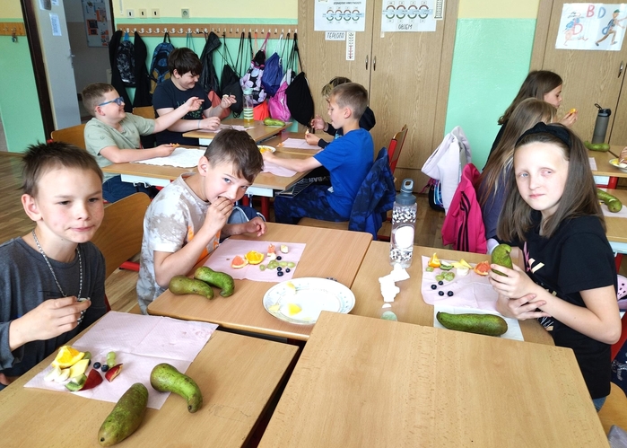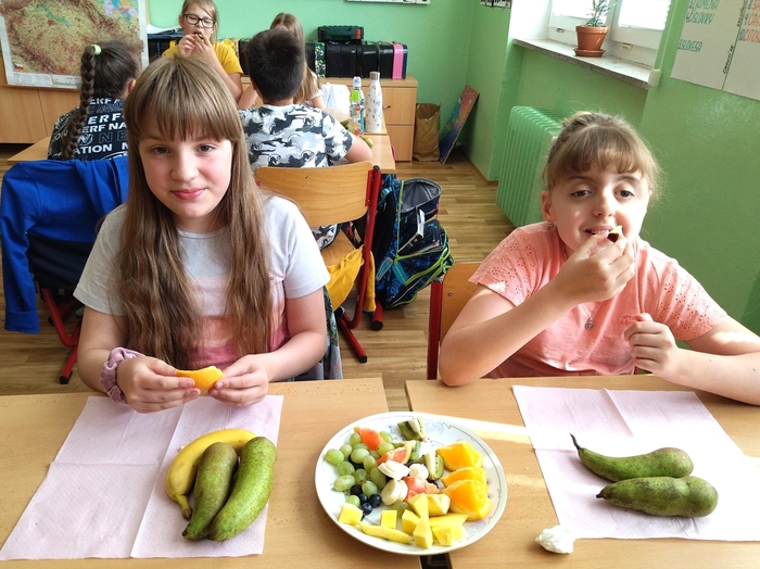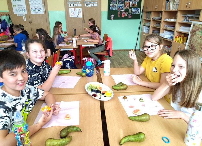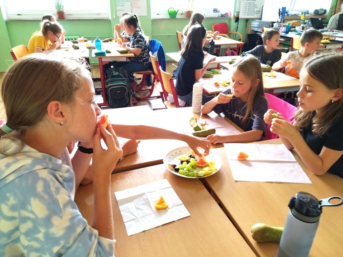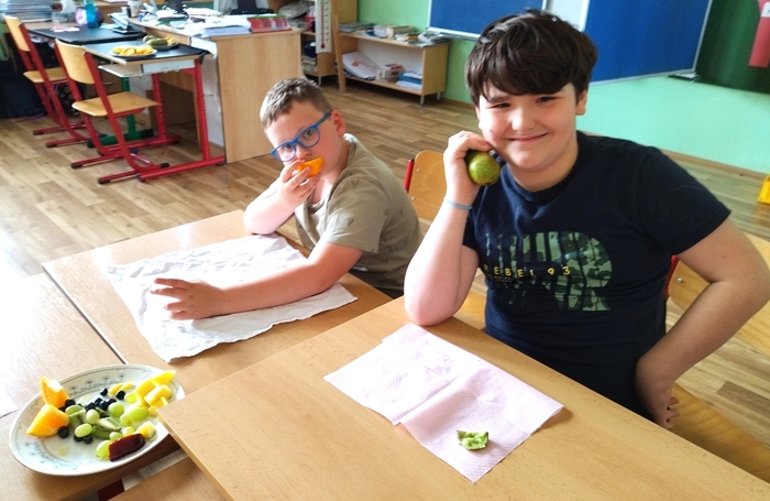 Úvod > Stránky tříd 25/26 > Archiv třídy > Rok 2022/2023 > 5.A > Fotogalerie 5. A > Mňam, mňam - ochutnávka ovoce!