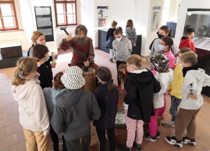 Po poledním klidu jsme sešli do Jáchymova a navštívili jsme Mincovnu. Paní průvodkyně nám vše krásně vysvětlila, ukázala, a dokonce nám odvyprávěla i dvě pohádky. Cestou zpátky jsme si vyzkoušeli únikovou hru. Plnili jsme úkoly a hledali indicie. K večeři nám pan kuchař uvařil všemi oblíbené špagety.
