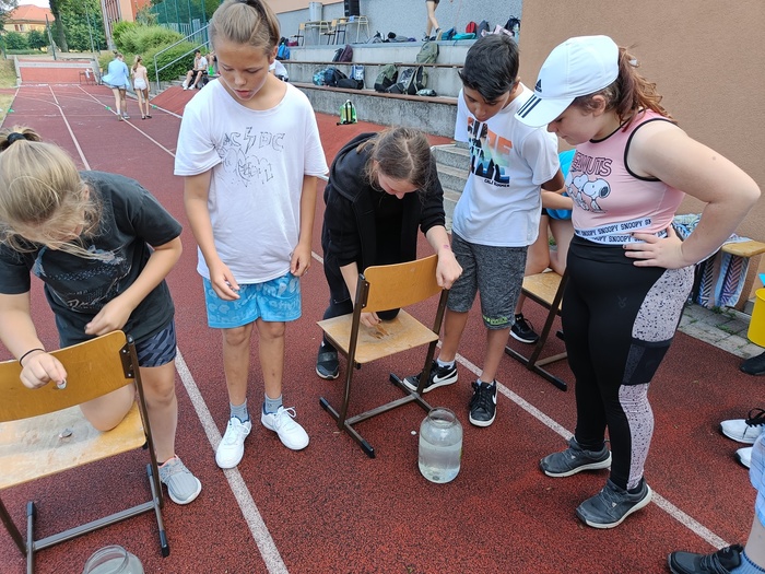 Úterý 28. 6., tedy dva dny před koncem školního roku, jsme strávili na školním hřišti, kde se konala sportovní olympiáda 2. stupně. Kdo by čekal běh na 800 m či skok vysoký, nemohl by se víc mýlit. Paní učitelka Karmazínová si se soutěžemi opravdu vyhrála a vymyslela nám disciplíny vskutku netradiční - skok pozadu, foukací slalom, běh v yettiho tlapách, hod plyšákem na cíl, pohyb na chůdách, hod frisbee, hod mincí do sklenice a skládání sirek na čas. Všichni jsme si tento den moc užili a zas jsme se o krok přiblížili k tak dlouho očekávaným prázdninám! :)