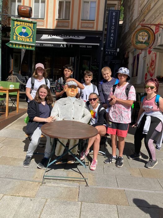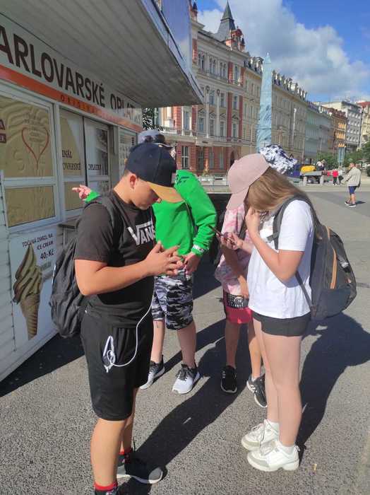 Karlovy Vary pro nás nejsou neznámé, ale tentokrát jsme je poznávali prostřednictvím interaktivní hry Objev město. Mobilní telefon nás naváděl trasou, na které jsme plnili úkoly. Naší cestou městem jsme navštívili park v městských lázních, Mlýnskou, Tržní i Vřídelní kolonádu. Nemohla chybět ani ochutnávka pramenů. U Vřídla se někteří posilnili lázeňskou oplatkou. Poslední úkol a tím i konec hry byl u Císařských lázní u pomníku Karla IV.