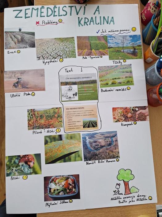 6. A se na Den Země věnovala se osvětovému úkolu z programu Recyklohraní – „Pojďme léčit českou krajinu“. Zhlédla výuková videa k tématu především klimatických změn v naší české krajině, poté se pomocí plakátů zamyslela, jak se naše krajina mění, jak můžeme pomoci zastavit či zpomalit tyto změny, anebo jak se na ně adaptovat a jak vrátit krajinu do lepší kondice. Zahrála si hru „Lesní podnik“, kde přemýšlela, jak udržet zdravý les a hospodařit s ním. Domluvila si s panem starostou sázení stromů ve městě. Nakonec šla ven zkoumat a fotit jarní přírodu (byliny a zvířátka), bohužel byla v tento den ještě kvůli chladu „schovaná“.