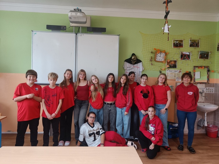 I pro letošní listopad 2025 si žákovský parlament naší školy připravil akci – BAREVNÝ LISTOPAD. Každý listopadový pátek se celá škola oblékla do předem určené barvy. První barvou byla barva červená, poté oranžová, hnědá a nakonec žlutá. Do akce se zapojili i někteří žáci a žákyně naší třídy s paní učitelkou třídní.