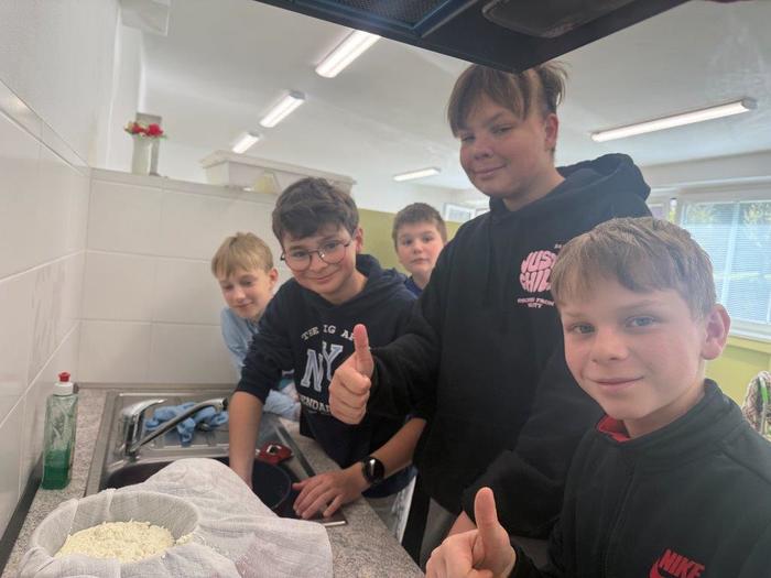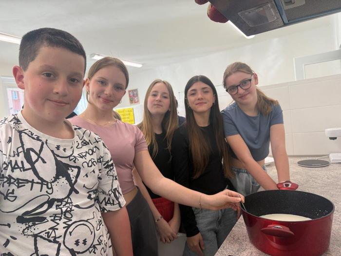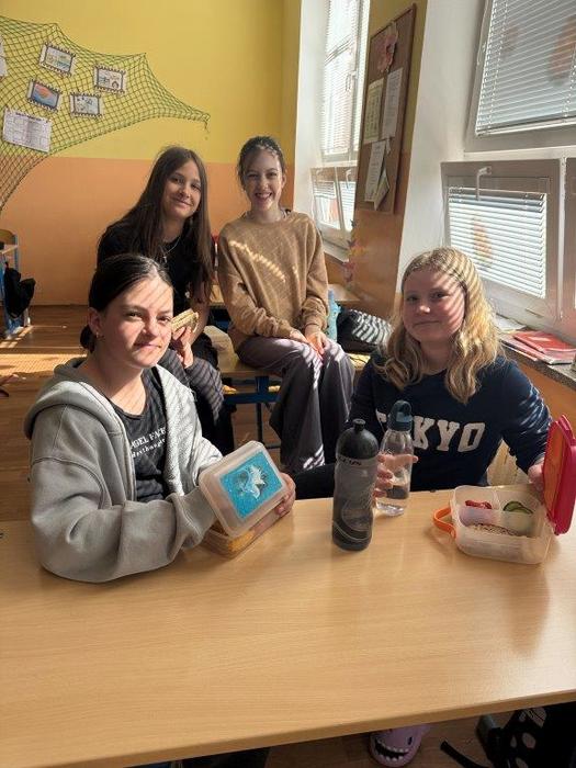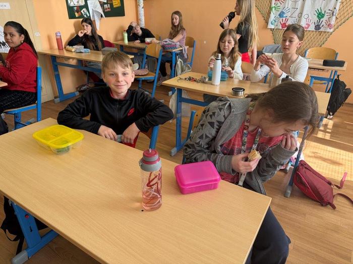 V úterý 22.04.2025 jsme ve škole oslavili Den Země. V naší třídě jsme si nejprve zhlédli videa týkající se plýtvání s potravinami a pokaždé jsme vedli krátkou diskuzi na téma plýtvání. Děti si také snědli svačinku, která pro tento den měla být bezobalová. Poté jsme si ve školních kuchyňkách vyzkoušeli výrobu sýru z mléka a podmáslí a venku proběhlo krátké povídání o chovu domácích zvířat, konkrétně o kozách. Ve třídě jsme den zakončili seznamem Desatera pravidel, jak neplýtvat potravinami a tvorbou plakátu (forma komiksu, myšlenkové mapy, ... apod.) na stejné téma.