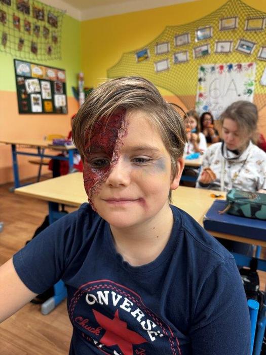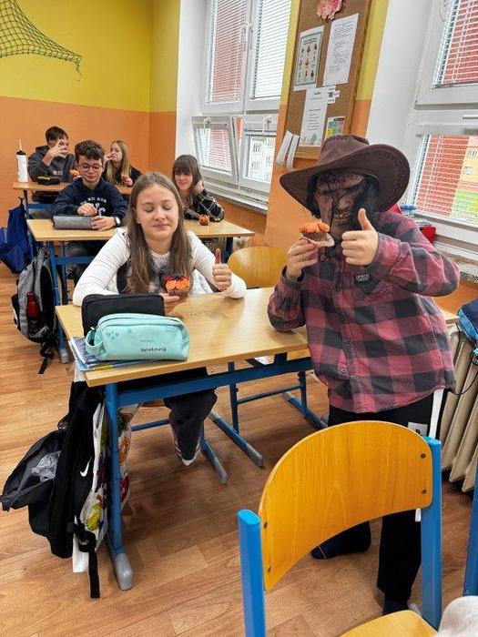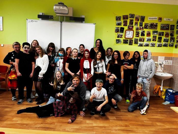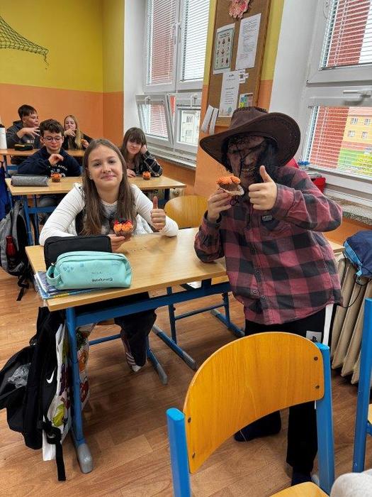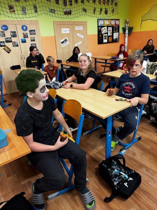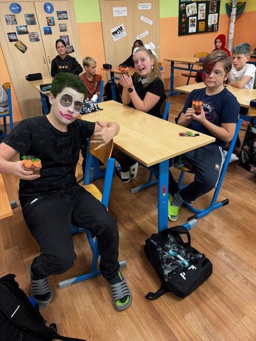 Dne 31.10.2024 jsme v 6.A společně oslavili Halloween. Většina žáků vyhověla prosbě paní učitelky a o den dříve, než je stejná akce plánovaná pro celou školu, přišla v různorodých kostýmech. Paní učitelka jako Morticia Addams pro všechny žáky upekla halloweenské muffiny, takže si party všichni užili.