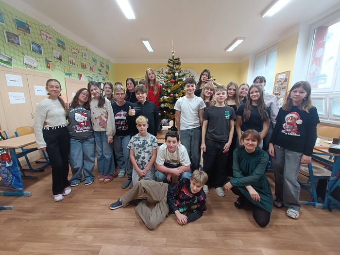 Předvánoční čas jsme si v pátek před vánočními prázdninami zpříjemnili různými aktivitami. Nejprve jsme dokončili sérii třídnických adventních úkolů - užili jsme si legraci při vytváření živého betléma, poté jsme obcházeli své spolužáky a hledali jsme někoho, kdo dělá určitou vánoční aktivitu. Další hodinu jsme si rozdali dárečky a něco pojedli a popili. Poté jsme si zahráli vánočně laděnou hru Co na to Češi. Na závěr jsme si pustili film Sám doma 2. Přejeme všem krásné vánoční svátky a hlavně hodně zdraví v novém roce 2026!