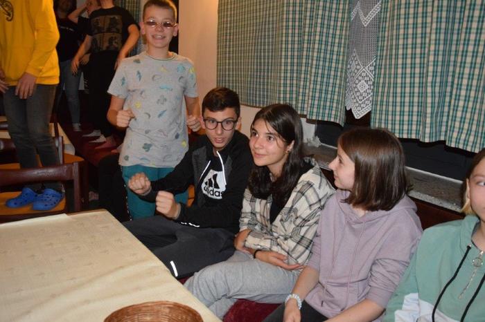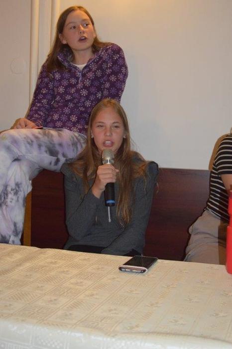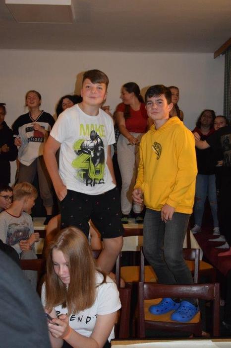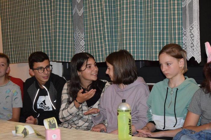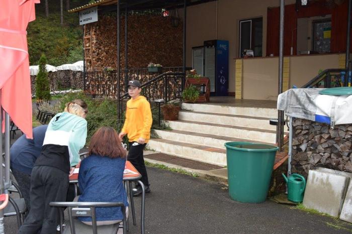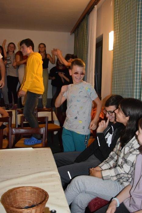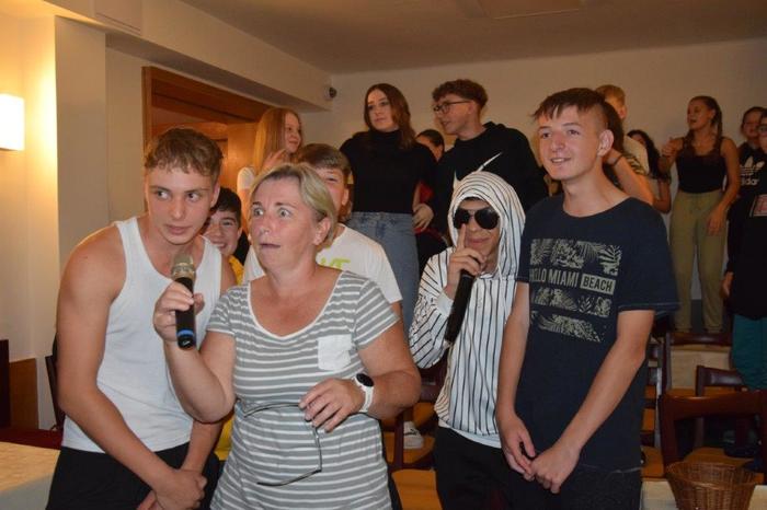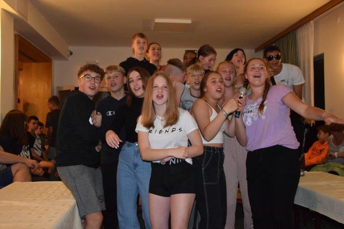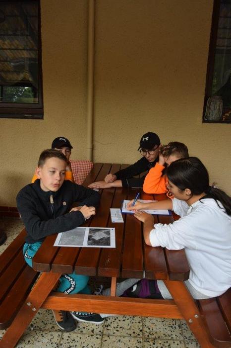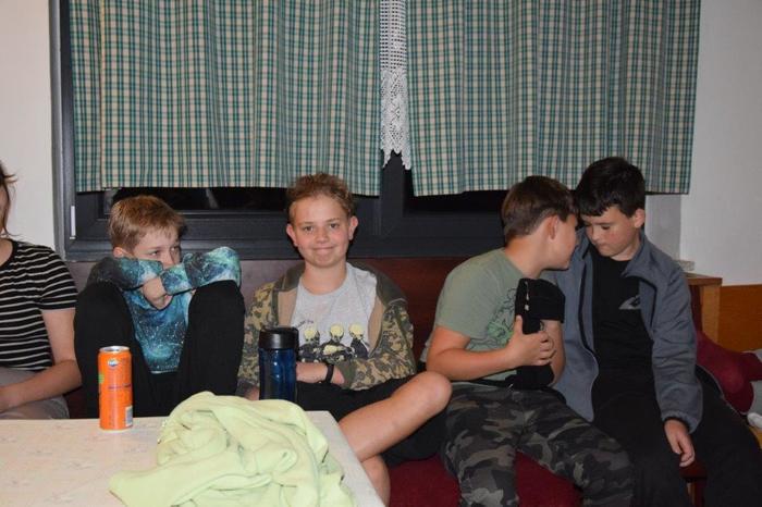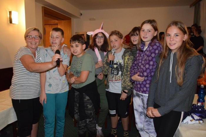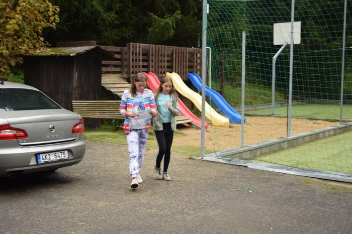 Druhý den nás počasí počasí přivítalo deštěm, takže ranní učení nebylo žádnou překážkou. Po obědě jsme si zahráli hru Einsteinova hádanka, při které děti hledaly zadání v okolí objektu a poté zavařily mozkové závity při luštění správné odpovědi. Závěr dne jsme strávily všechny třídy společně zábavou při karaoke, večer byl moc fajn.