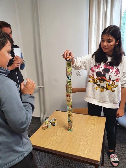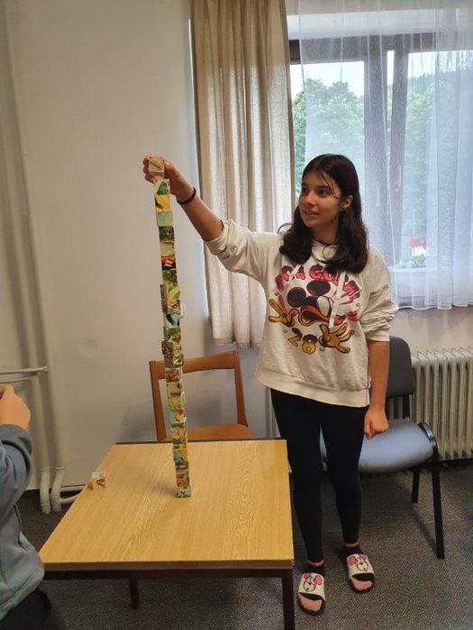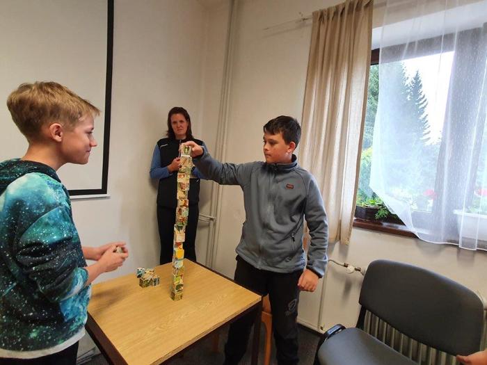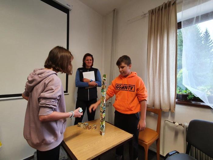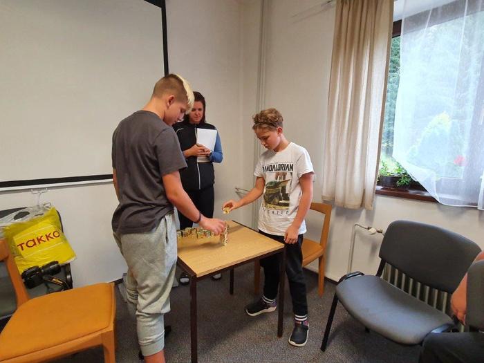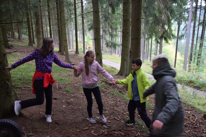 Třetí den jsme slavili svátek Den české státnosti, dopoledne jsme zhlédli film o svatém Václavovi, odpoledne jsme se prošli při kimové obrázkové procházce, vyřádili jsme se při vybíjené a večer děti zvládly ještě stezku odvahy, kterou pro ně připravili naši deváťáci.
