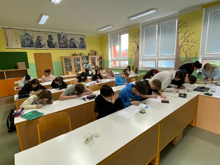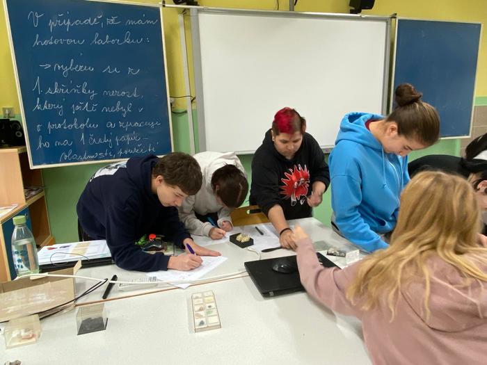 Žáci pracovali s různými vzorky a jednotlivé testy (pomocí keramických destiček a skel, geologického kladívka, ale rovněž pomocí lup) prováděli samostatně nebo ve dvojicích. Díky tomu si mohli ověřit, že minerály, které vypadají podobně, se mohou svými vlastnostmi výrazně lišit. Všechny výsledky pečlivě zapisovali do laboratorního protokolu, aby měli všechna naměřená a pozorovaná data přehledně pohromadě.