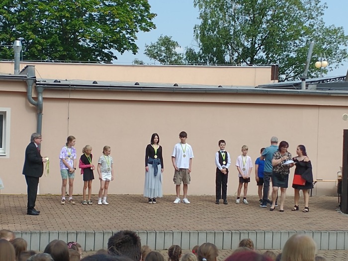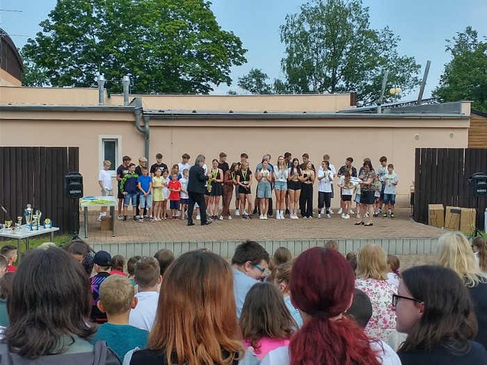 Jako každý rok, tak i tento rok se konalo Poslední zvonění, kde se loučíme se školním rokem. Vybraní žáci z naší třídy se stali hrdými nosiči olympijských kruhů a olympijských ohňů a mohli tuto akci zahájit. Na této akci se každoročně pasují předškoláci na školáky, deváťáci mají společný taneček s předškoláčkama a vyhlašují se zde nejlepší sportovci školy.