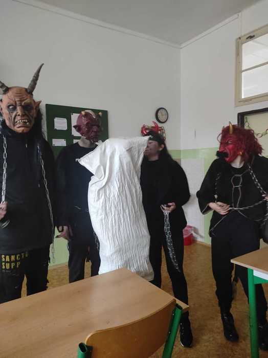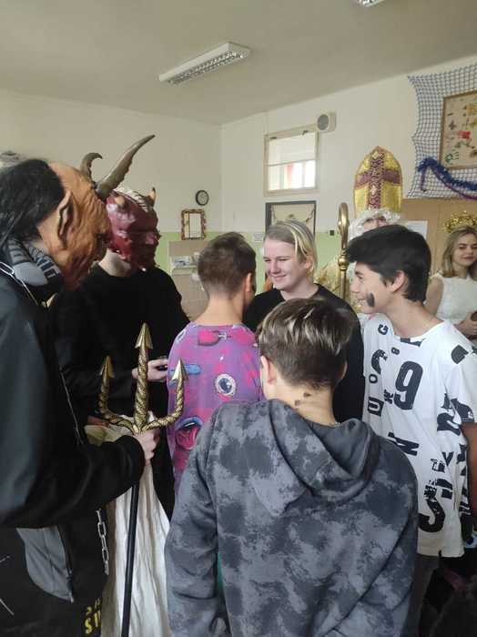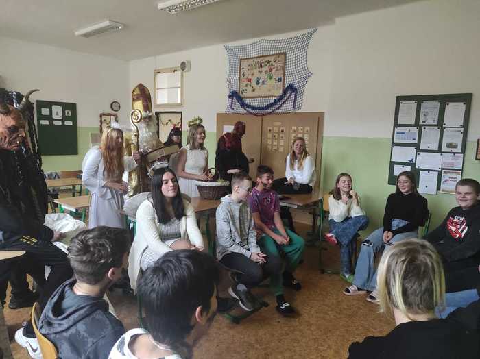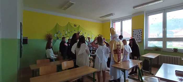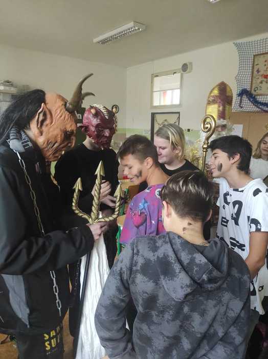 Mikuláš se svým doprovodem dorazil i do naší třídy. Hříšníky si čertíci vzali do parády, hodné děti dostaly pochvalu. Děkujeme svým spolužákům z 9. třídy za příjemný zážitek.