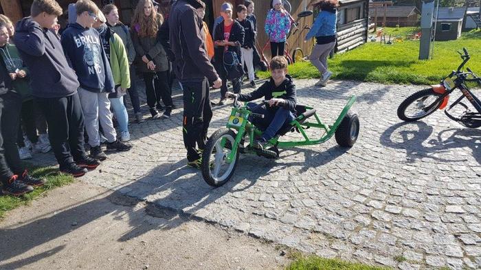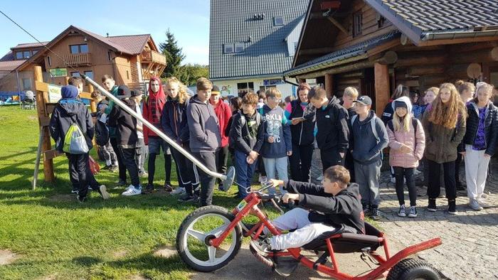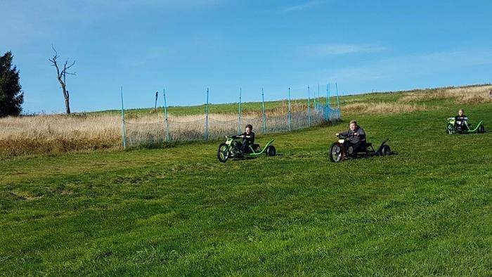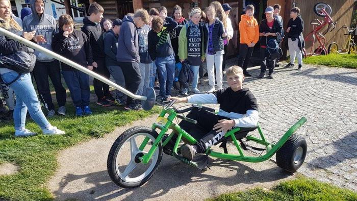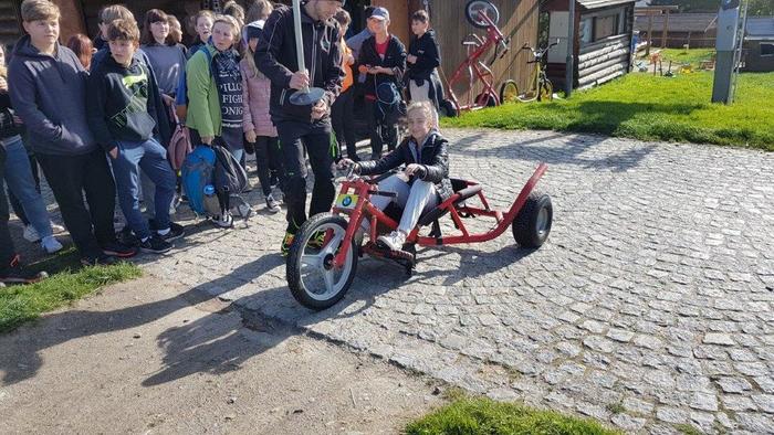 Šestý den byl pátek 1.10.2021. Dopoledne jsme se opět učili, ale tady na škole v přírodě už naposledy :-). Po obědě za námi přijel na návštěvu náš pan ředitel Mgr. J. Daneš a pan starosta města Březová M. Bouda. Naši spolužáci si pro ně připravili překvapení v podobě básničky - 8.A, scénky - 7.A a módní přehlídky - 9.A. Deváťáci si to ale nějak vyměnili, protože kluci předváděli holky a holky zase kluky. Všechna představení byla vydařená a docela zábavná. My ze 7.B jsme pozvali našeho pana ředitele na "pinčes" a zahráli jsme si s ním kolotoč. Pan starosta mu velmi fandil, přes to byla hra vyrovnaná a vítězové jsme byli vlastně všichni, protože jsme si to moc užili. Odpoledne jsme strávili na Božím Daru v areálu Novako a zajezdili jsme si na motokárách. Pochodem krásnou přírodou jsme se vrátili zase zpět na hotel Můstek, kde nás čekala večeře. Od 20:00 h máme diskotéku, takže jdeme tancovat a možná budeme tančit až do rána :-) ještě po večerce v našich snech....