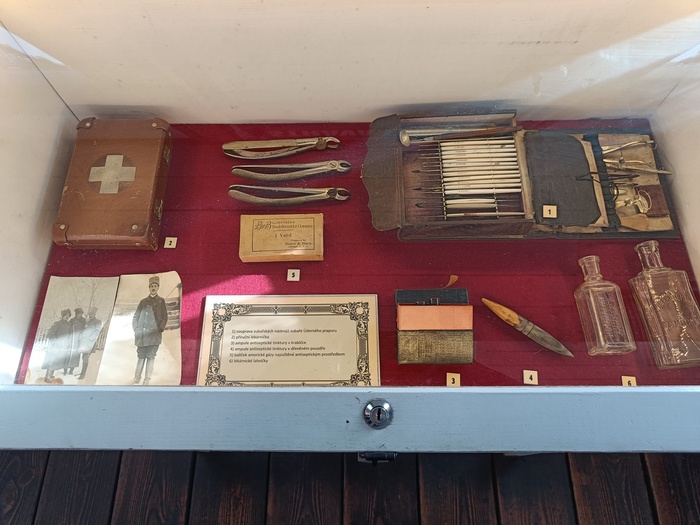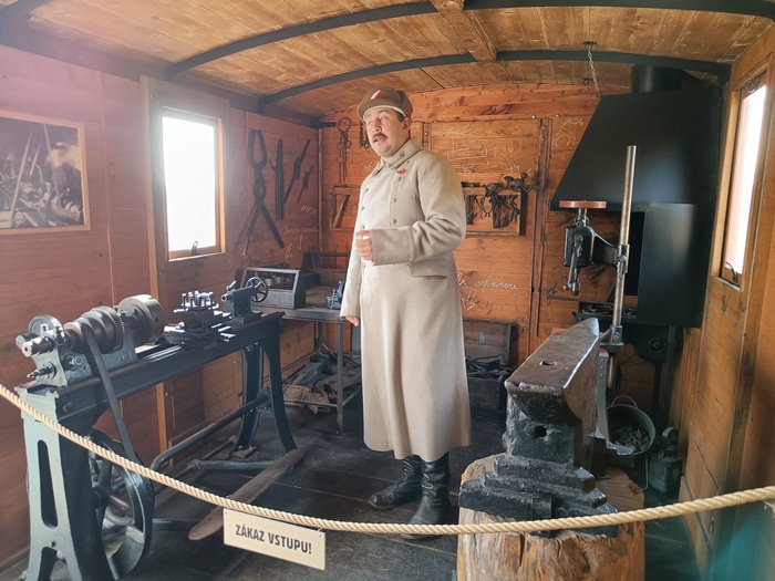 Po příjezdu do Kynšperka se nás ujal průvodce oblečený v replice uniformy československých legionářů. Nejprve nám pustil film, který zasazoval boje československých legionářů do širšího historického kontextu. Následovala prohlídka všech vagonů s doplňujícím výkladem. Mohli jsme tak vidět např. obytný vůz, který se pro naše legionáře stal dočasným domovem, ošetřovnu, kovárnu, poštovní vůz či ukázku obrněného vagonu. Celá expozice byla doplněna o dochované předměty každodenní potřeby, což umožnilo žákům lépe si představit útrapy legionářů. Na závěr si žáci mohli zkusit vyhledat své předky, kteří bojovali v československých legiích. To je možné i z pohodlí domova na stránkách www.krevlegionare.cz.