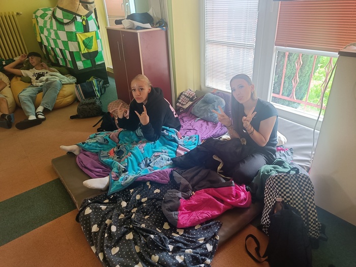 Naše třída se z pátka 6. 6. na sobotu 7. 6. dočkala slíbené přespávačky ve škole. A že jsme si ji parádně užili! Nejprve jsme si udělali odpolední výšlap na Kamenici. Po seběhnutí zpět na Březovou jsme si u altánu opekli buřty, někteří zvolili i sladší variantu :) Večer jsme zakončili pizzou a promítáním filmu. Byli jsme v tak dobré náladě, že se nám vůůůbec nechtělo spát, ale i to se nám nakonec zdárně podařilo. V sobotu ráno jsme posnídali v našich školních kuchyňkách, kde jsme celou přespávačku zakončili.