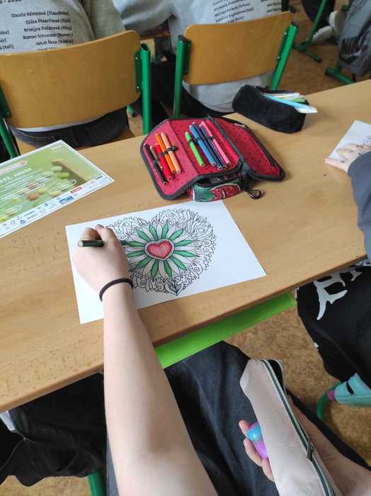 7. dubna si každoročně připomínáme Světový den zdraví. Jelikož měli naši deváťáci zrovna před přijímačkami, zaměřili jsme připomínku tohoto dne na péči o duševní zdraví. Na úvod si všichni vyplnili dotazník o tom, co jim způsobuje úzkost. Následně jsme se o tom v debatním kroužku krátce pobavili. Kdo chtěl, sdílel i nějaké tipy, jak se stresem pracuje. Poté jsme si ukázali aplikaci Nepanikař, která umožňuje monitorovat náladu, zapisovat si své zážitky a pocity a pomáhá při psychických potížích. Ve zbytku hodiny všichni vybarvovali mandalu a sledovali první díl seriálu Velký průvodce meditací.