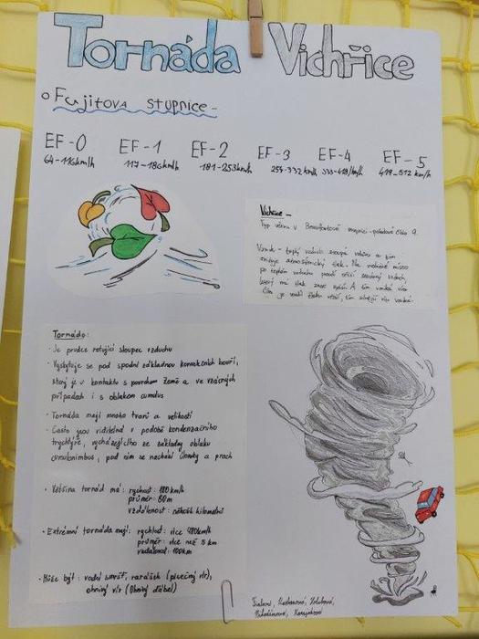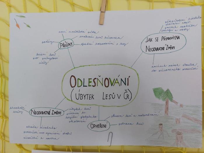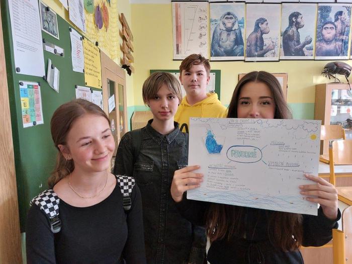 V další části jsme s dětmi zhlédli krátké video „Jak vyléčit českou krajinu a adaptovat se na změny klimatu“. Poté se třída rozdělila na 4 skupiny a zpracovali projekt, kde si každá skupina vybrala jednu klimatickou změnu (vichřice, sucho na polích, povodně, úbytek lesů) a zamyslela se nad tím, jaká opatření pomohou zmírnit tyto změny a případně, jakým způsobem se adaptovat na změny, které již nelze odvrátit. Každá skupina prezentovala svůj projekt před třídou a proběhla společná diskuze s dalšími nápady. Musím žáky moc pochválit, protože prezentace a projekty byly opravdu velmi zdařilé.