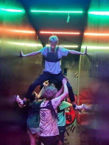 Odpoledne jsem se přesunuli metrem do pražské části Libeň, kde na žáky čekal nevšední zážitek v zábavním parku Futurento. Děti musely tři hodiny soutěžit ve čtyřčlenných týmech a plnit zajímavé úkoly zaměřené především na spolupráci.