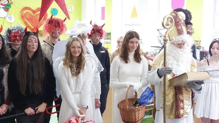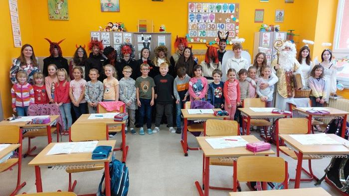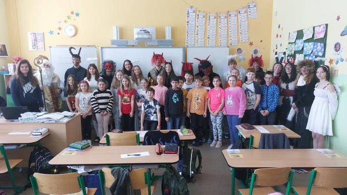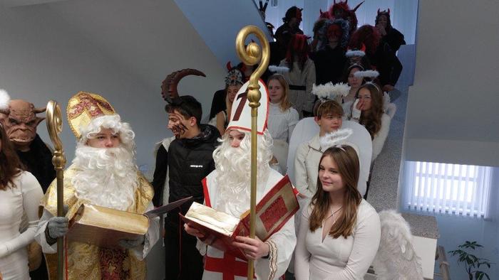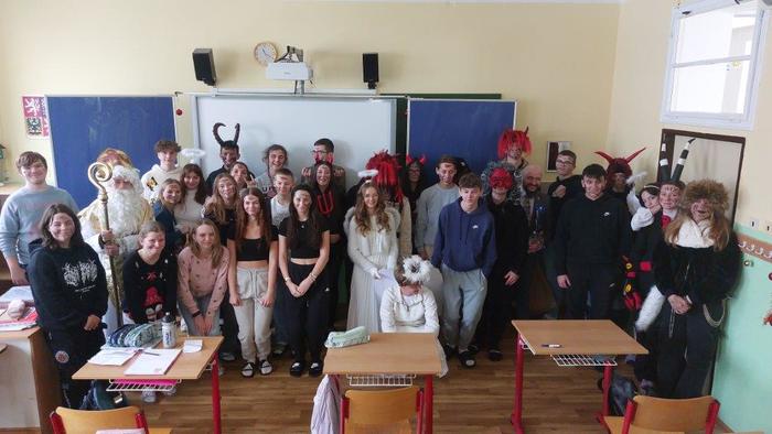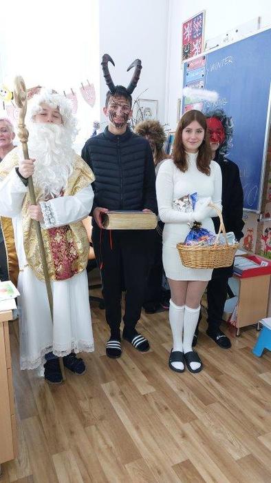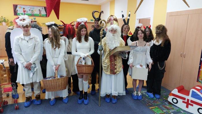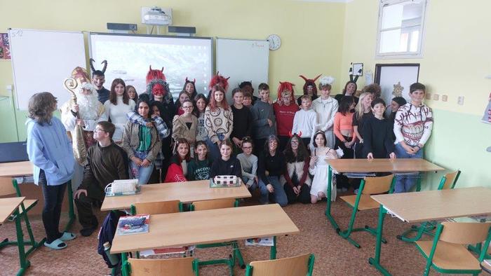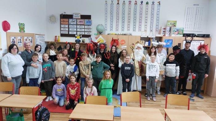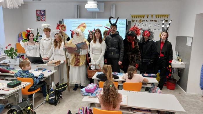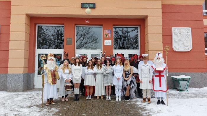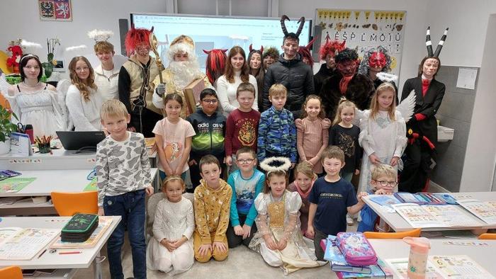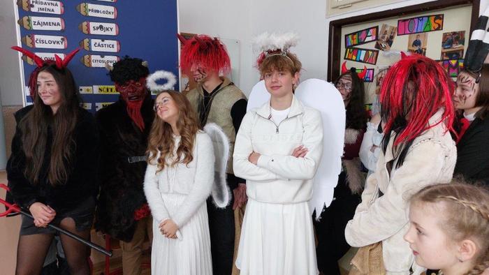 Dne 5. prosince již tradičně žáci devátých ročníků připravují Mikuláše nejen pro žáky naší základní školy, ale i pro malé děti ze školky, pro milé seniory z pečovatelského domu a také pro zaměstnance Městského úřadu Březová. Letos tento pěkný úkol museli splnit žáci naší 9.A. Týdenní příprava se vyplatila a celá akce se dětem moc povedla. Masky jsme měli pěkné, čerti nebyli příliš strašidelní, a tak i všechny školkové dětičky našly odvahu a s Mikulášem, anděly i čerty se vyfotily. Všem, kteří se včerejší akce zúčastnili, moc děkuji.