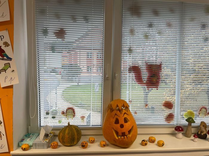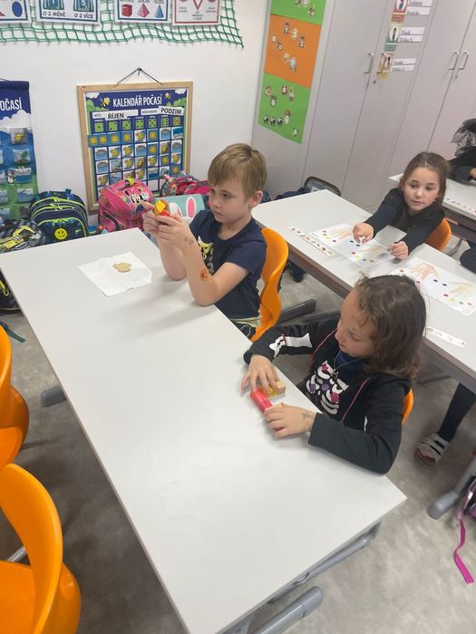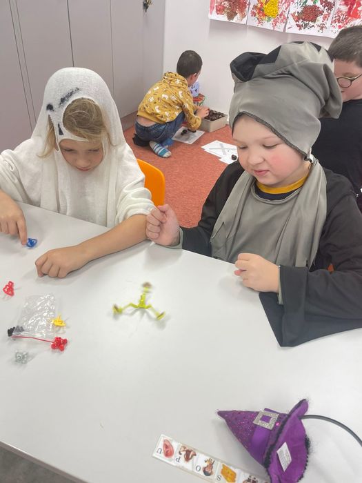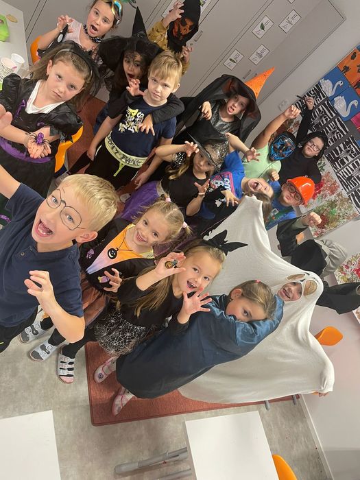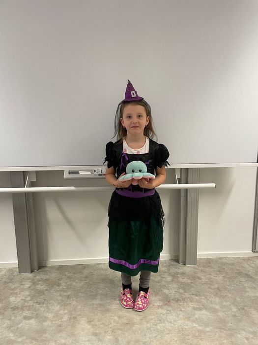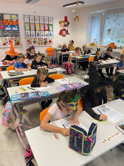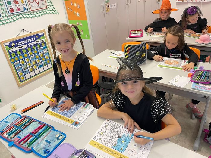 Poslední říjnový den si děti mohly přinést masku a celé dopoledne se v nich účastnily několika halloweenských aktivit. Čekala nás recitace básniček, dlabání dýní, zdobení mandarinek, strašidelné počítání, čtení a psaní, vybarvování obrázků, tancování, mlsání dobrůtek, přípitek i hraní na zlepšení jemné motoriky, dýchání a zrakového vnímání. Děti si strašidelný den moc užily.