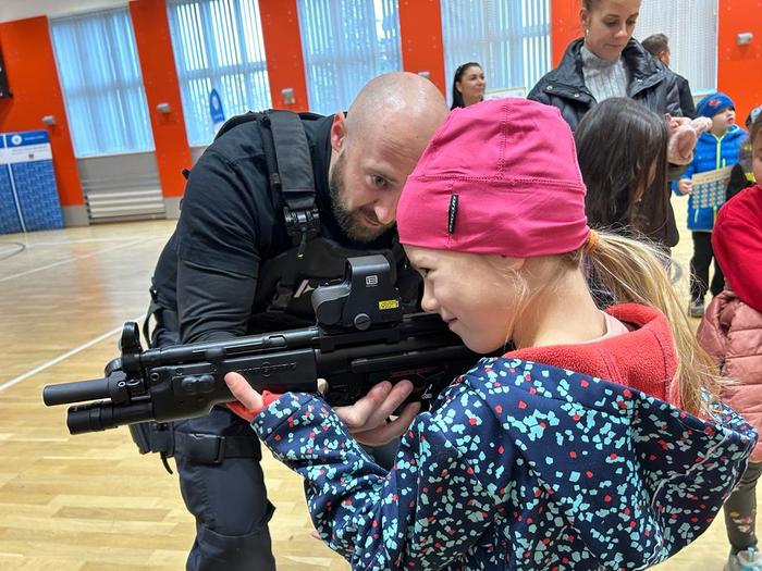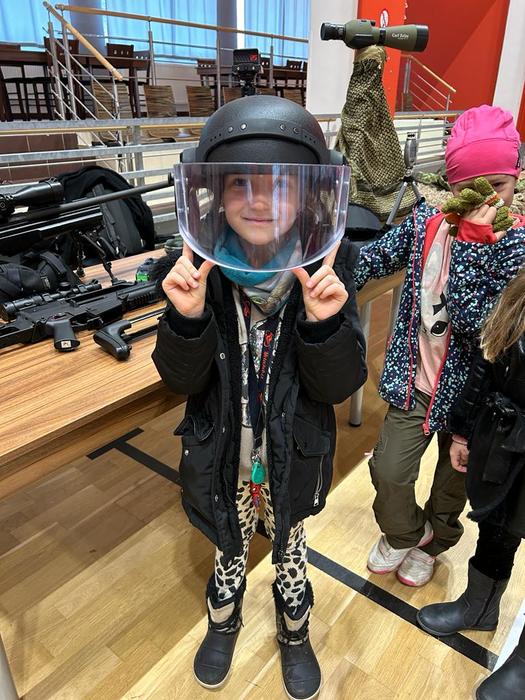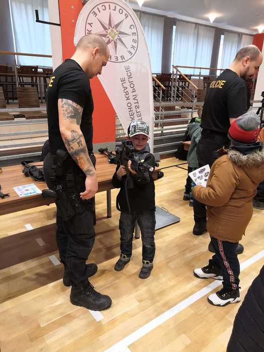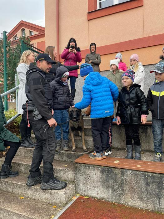 V rámci akce Krimifest viděla naše třída v kině animovaný film Zlouni, před budovou družiny dynamickou ukázku práce policistů, na hřišti práci psovodů, v hale ukázku zbraní a jiných pomůcek a na parkovišti dopravní prostředky. Děti byly i přes nepřízeň počasí nadšené.