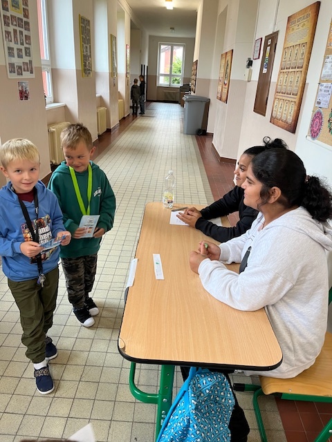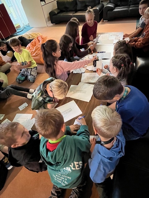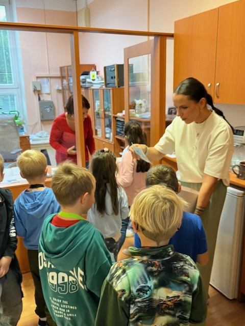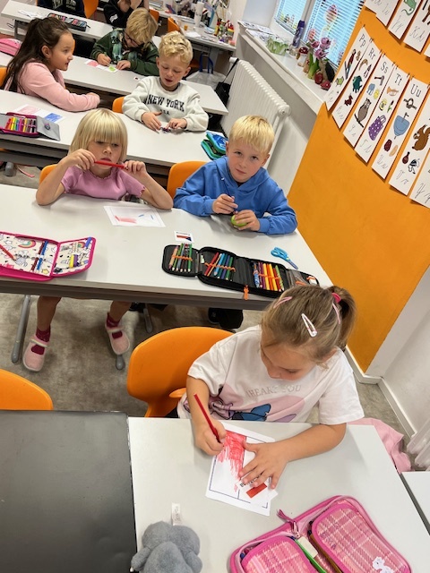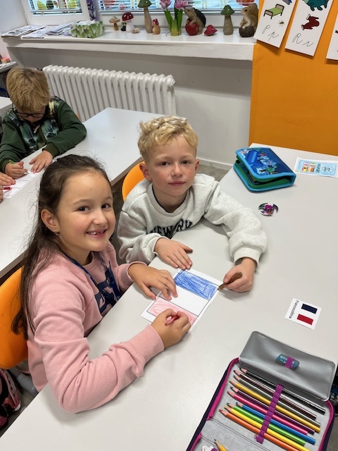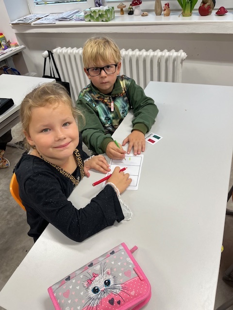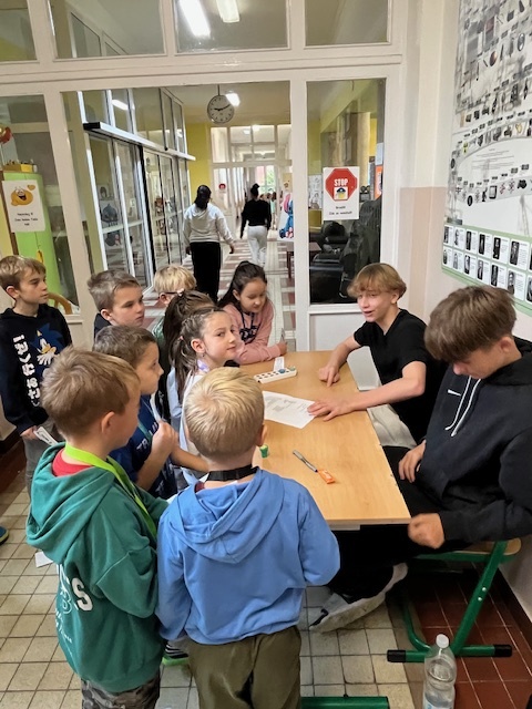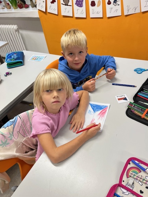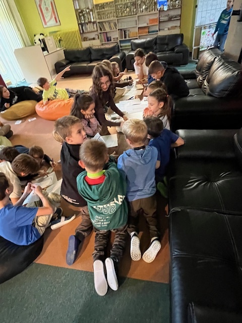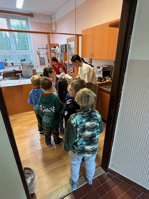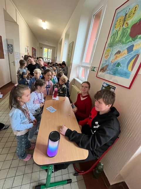 S dětmi jsme oslavili 7. 10. 2025 Evropský den jazyků. Žáci si nejdříve vybarvili svůj pas a pak už se vydali plnit zajímavé úkoly, které si pro ně připravili deváťáci. Rozeznávali cizí řeči, přemýšleli, jaká jídla se vaří v různých zemích, počítali a zdravili se v jiných jazycích. Dozvěděli se příběh The very hungry caterpillar od Erica Carla a společnými silami vytvořili plakát s vlajkami a pozdravy v různých zemích. Zahráli si také pexeso s vlajkami, dokonce už několik vlajek poznají i bez nápovědy.