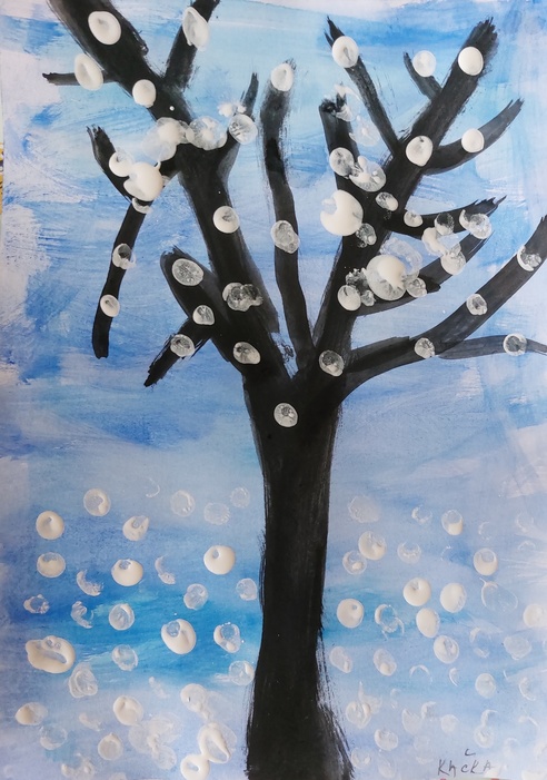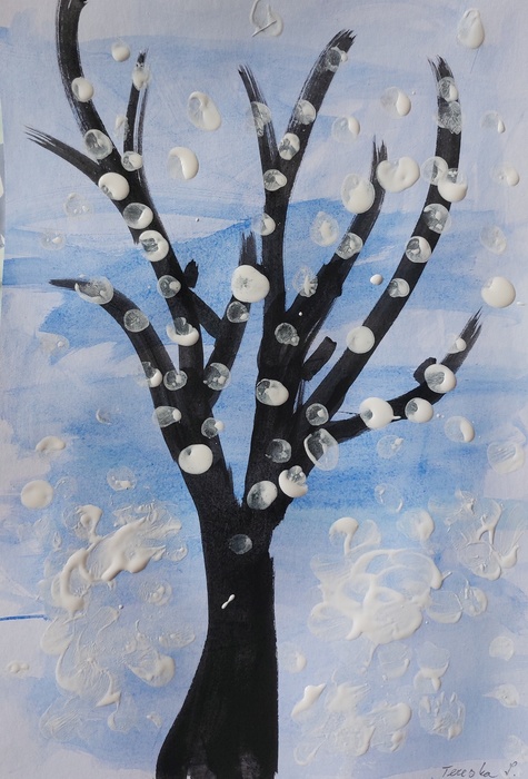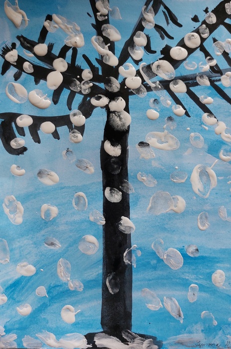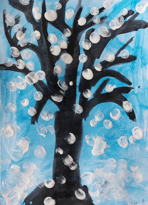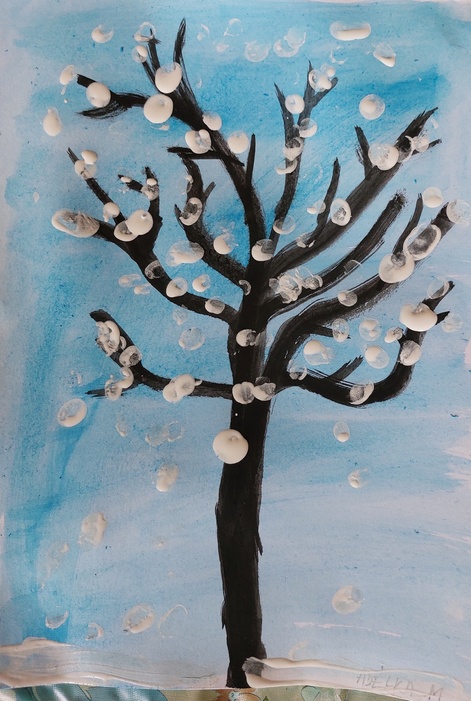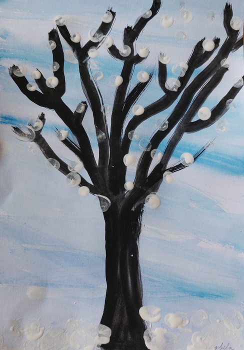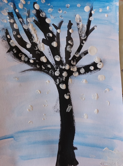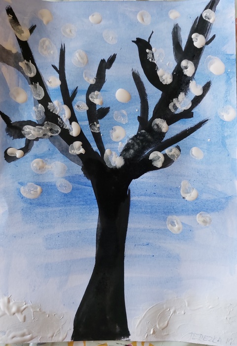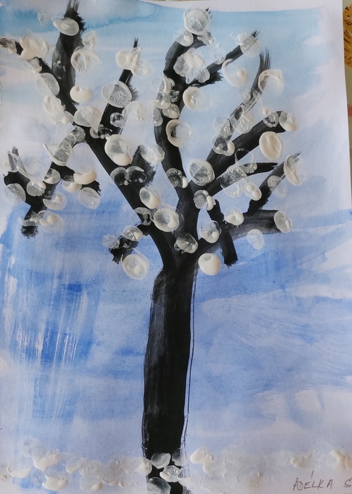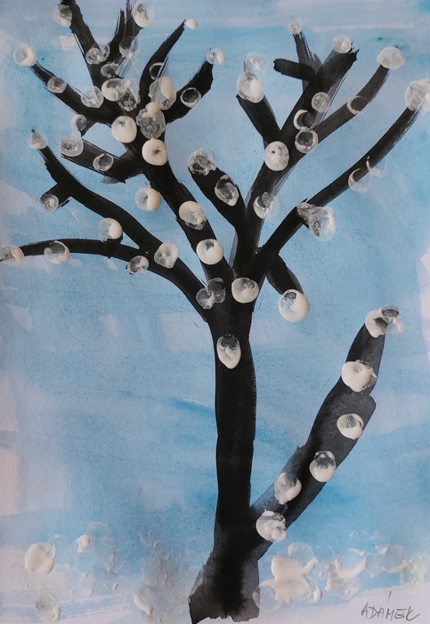 Úvod > Stránky tříd 25/26 > Archiv třídy > Rok 2022/2023 > 2.B > Nástěnka 2. B > Padá sníh - zasněžený strom